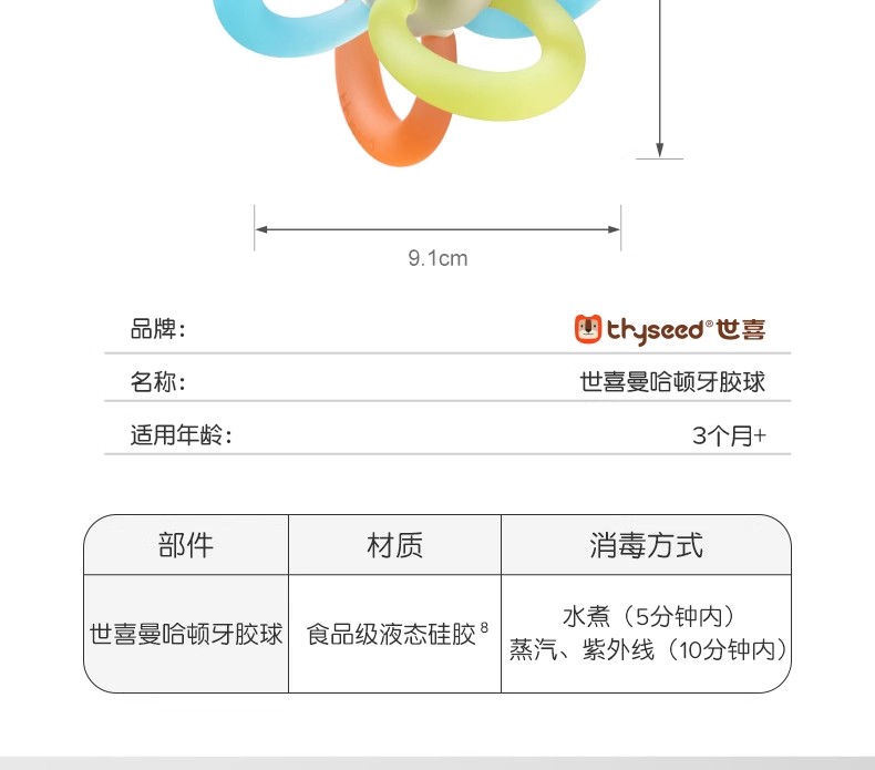 Thyseed世喜 曼哈顿牙胶球 婴幼儿硅胶可磨牙口欲期玩具防吃手小月龄 3个月+