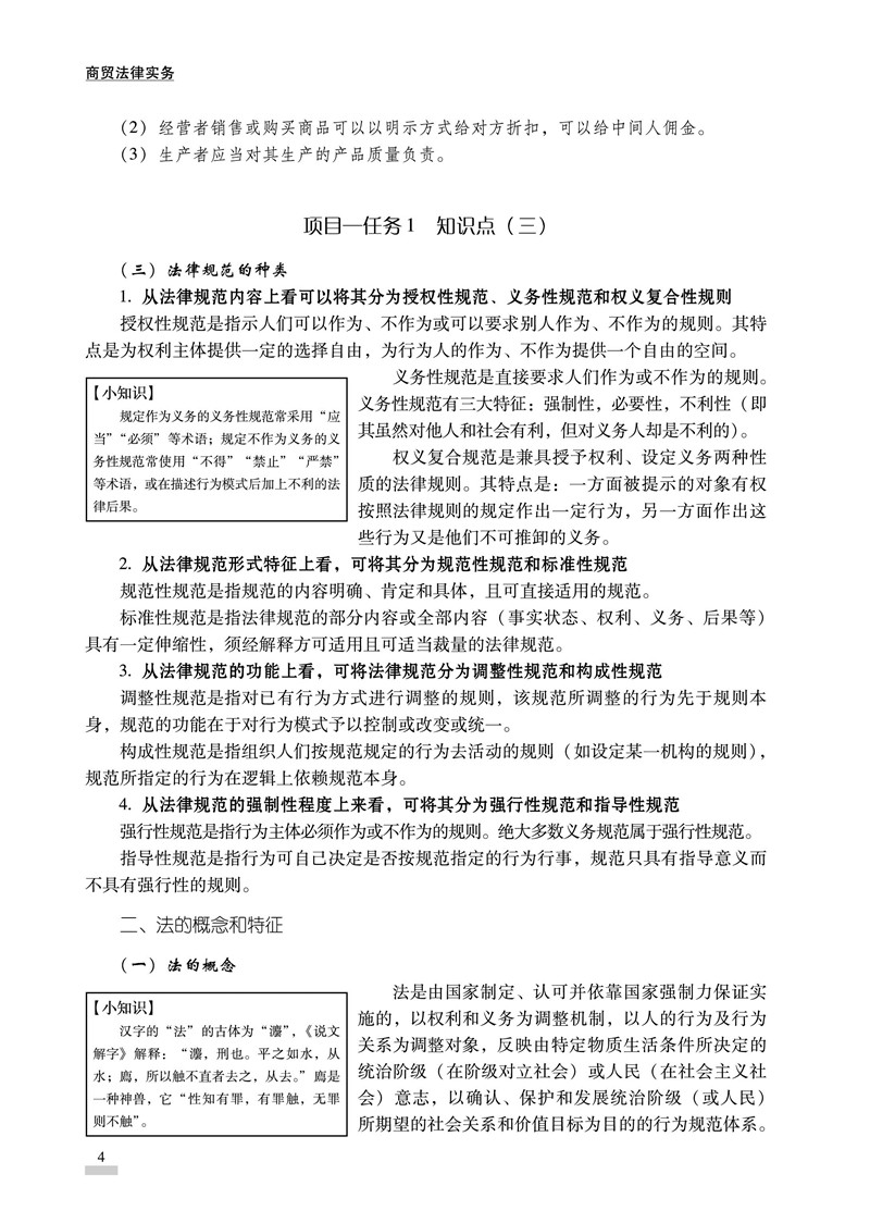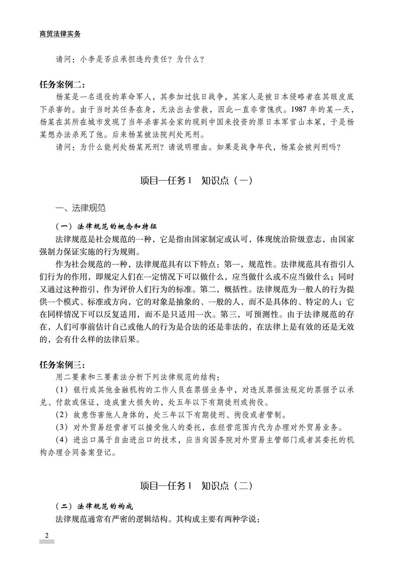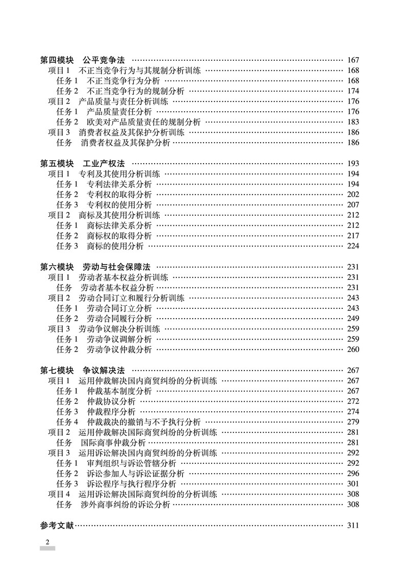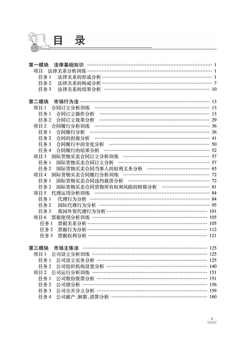 《商贸法律实务》是为解决高职院校商贸、财经类专业学生在未来的工作和生活中可能遇到的法律问题而编纂的一本新型项目化教材。其着重体现了“以能力培养为本位”“以促进就业为导向”的基本思想。全书分为法律基础知识、市场行为法、市场主体法、公平竞争法、工业产权法、劳动与社会保障法、商贸争议解决法七大模块。我们期冀学生通过这些内容的学习,在面对法律问题时能运用法律的思维方式来考虑解决方案,并能将所掌握的法律知识运用到实际的业务工作中去。