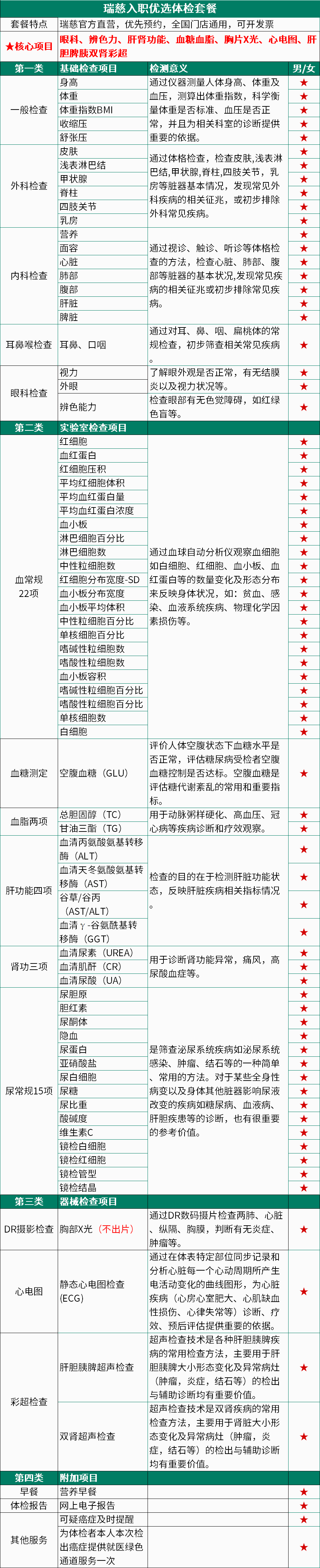 瑞慈入职优选体检套餐