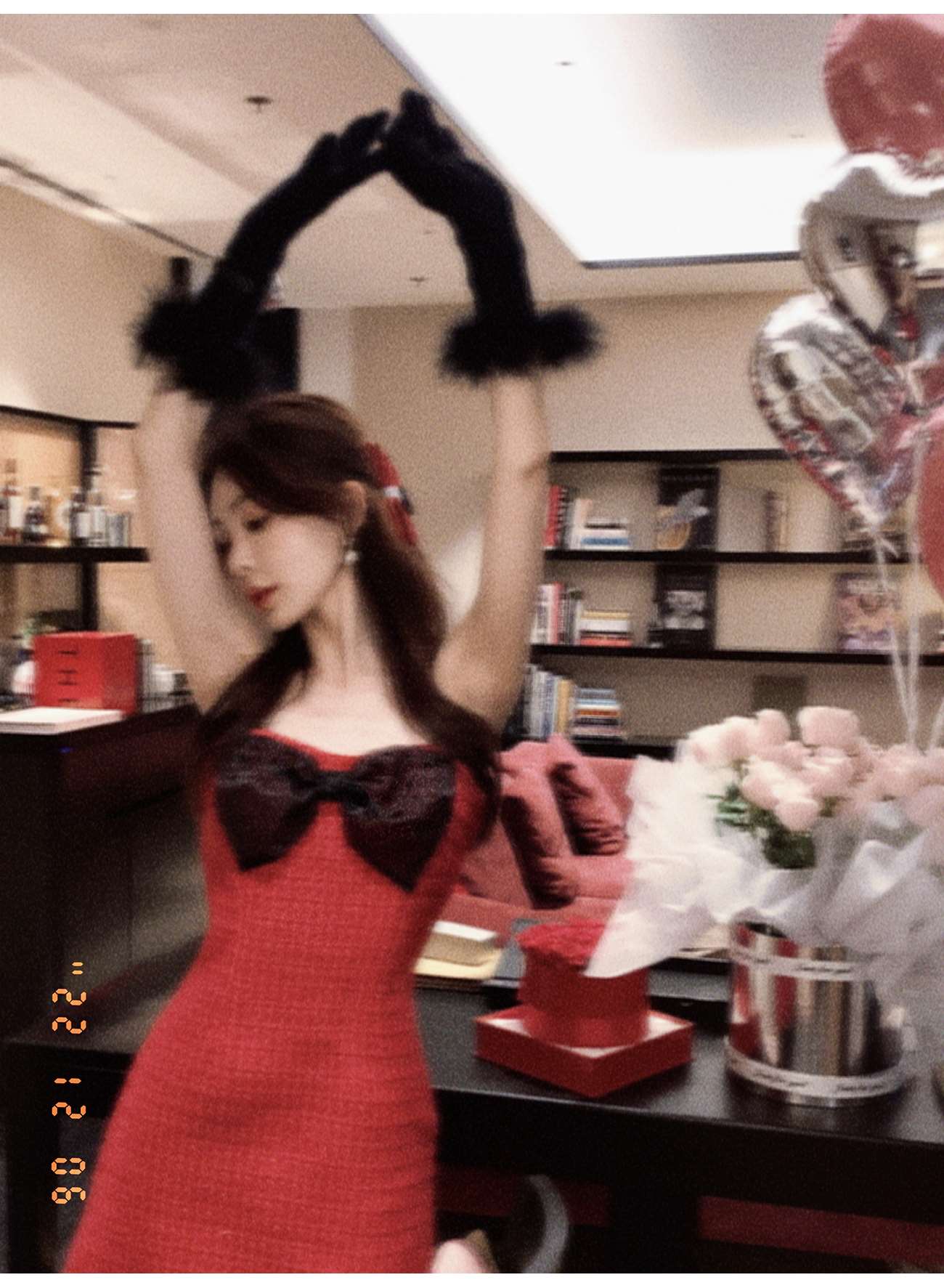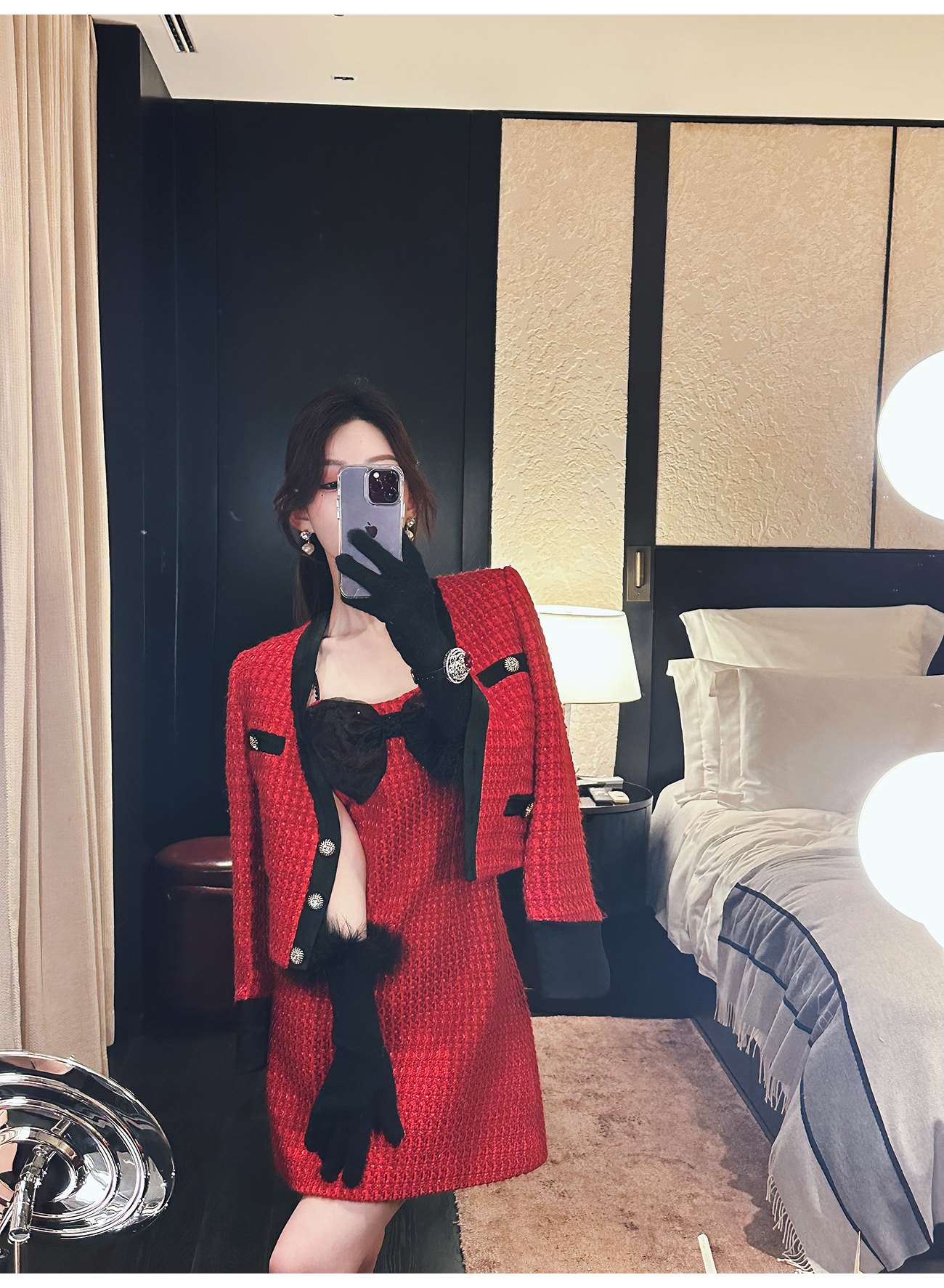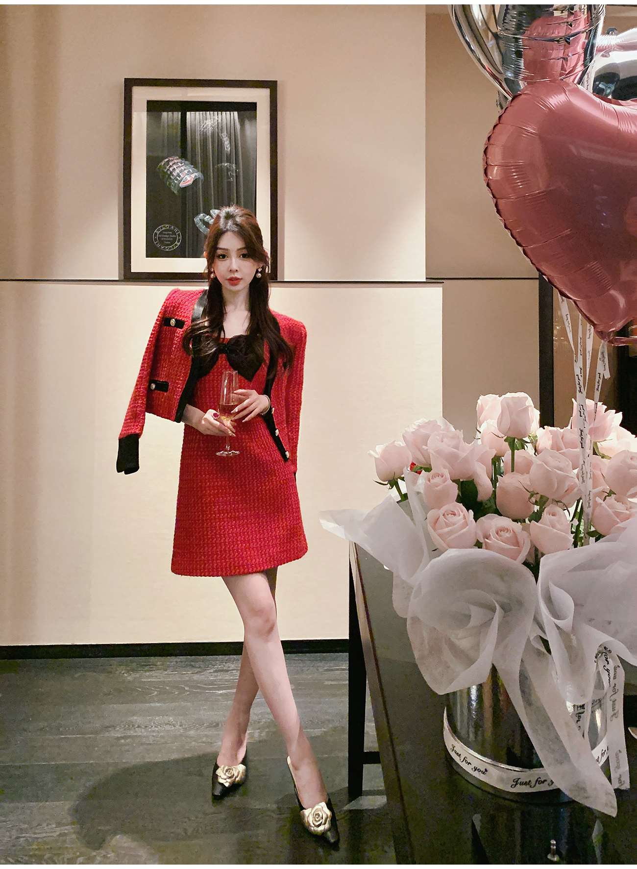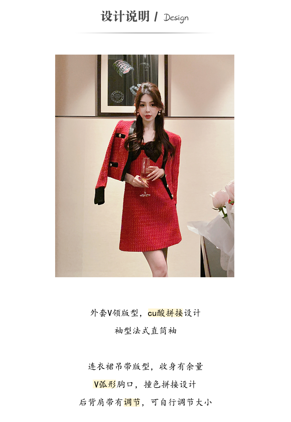 BeQueenStory【贺歳仟金】名媛小香风蝴蝶结设计感外套&连衣裙套装