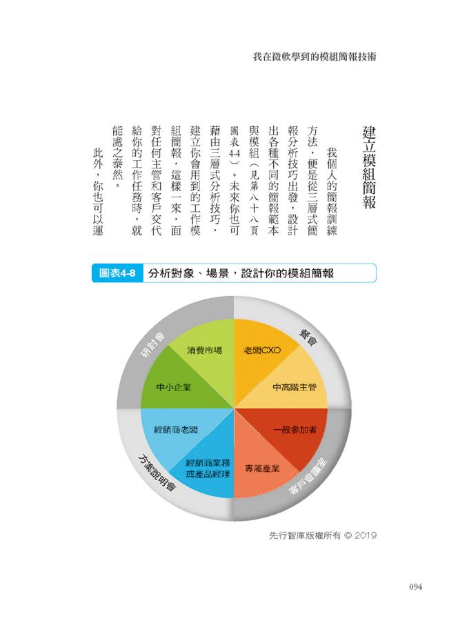 本書特別提供微軟最常用的4種場合、8種客戶的簡報模組,全圖解呈現,