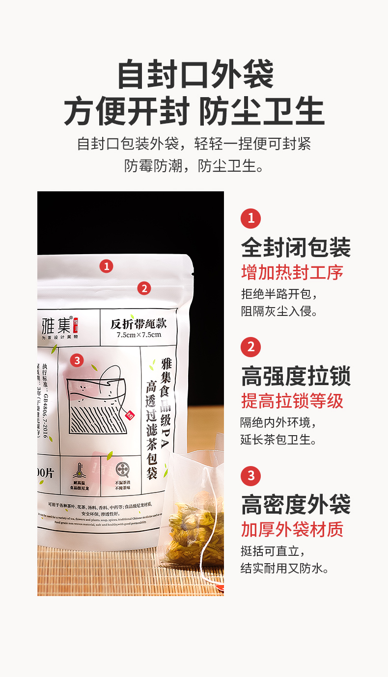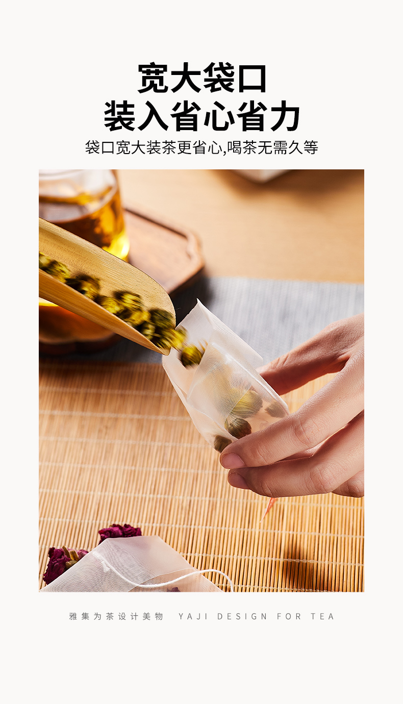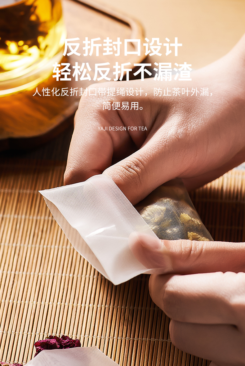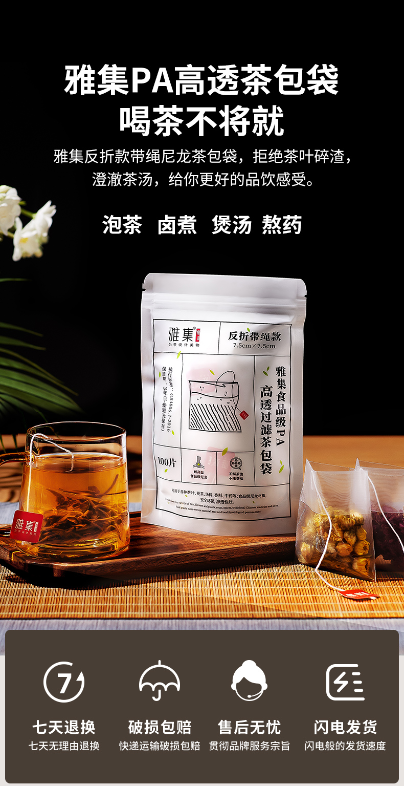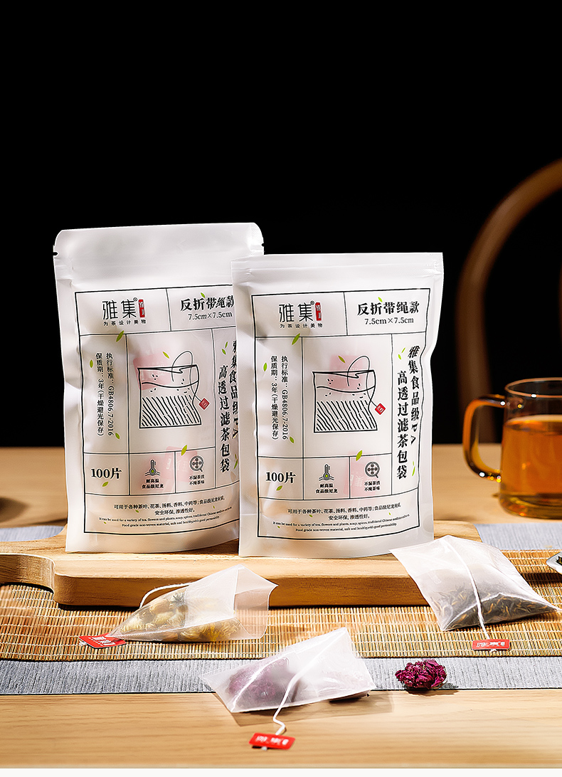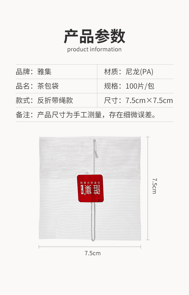 雅集食品级PA高透茶包袋(反折带绳7.5*7.5cm-100个)