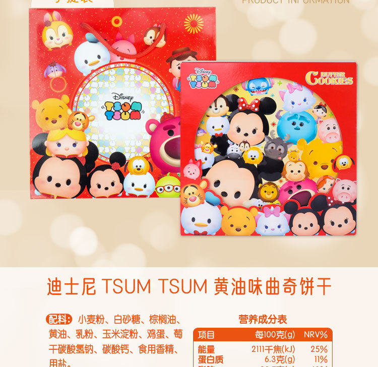 迪士尼TsumTsum黄油味曲奇饼干338g/059756 松松脆脆曲奇让年味更浓