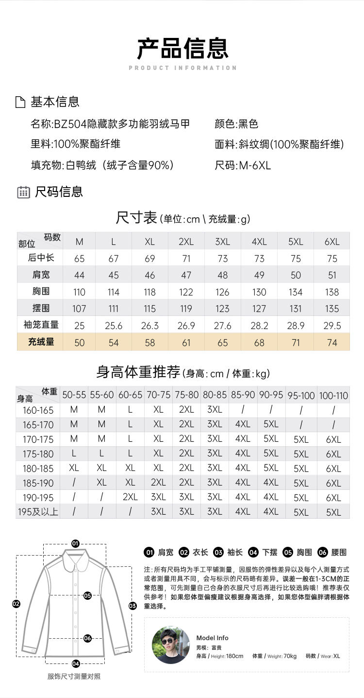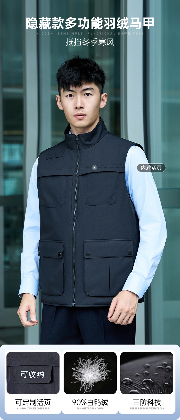 【隐藏款多功能羽绒马甲】防水防污通勤马甲白鸭绒无袖羽绒外套BZ504