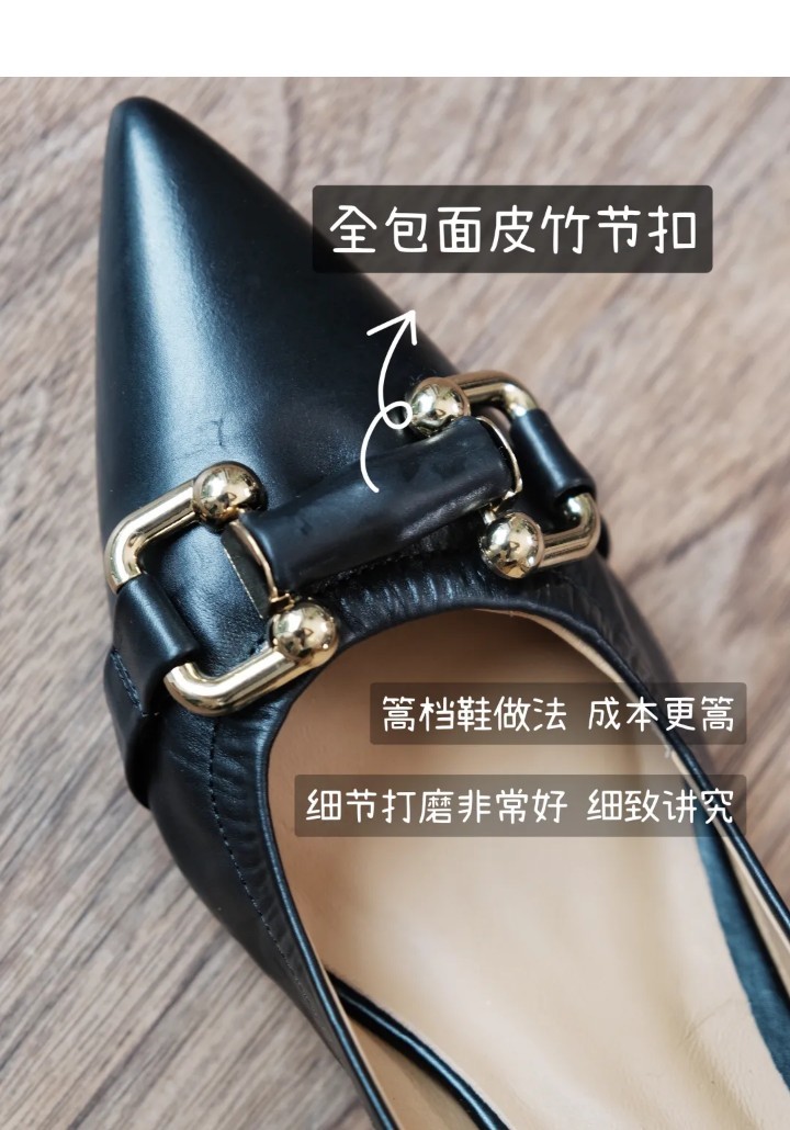 还有一个篙档鞋才有的做法——全包面皮竹节扣,这个做法市面上比较少,非常讲究的工厂和品牌会这样做,更注重细节!
