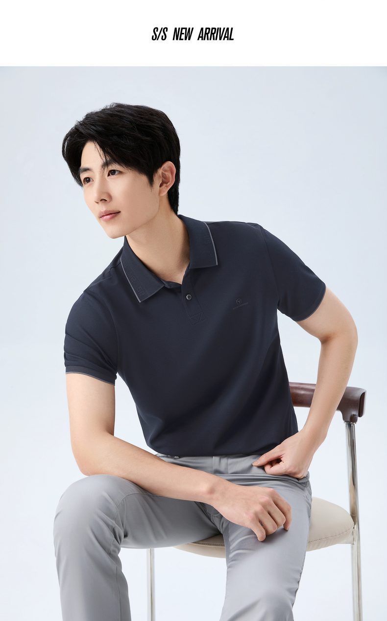 【含桑蚕丝/不变形领】柒牌短袖POLO衫2026夏季新款休闲上衣 130T70500