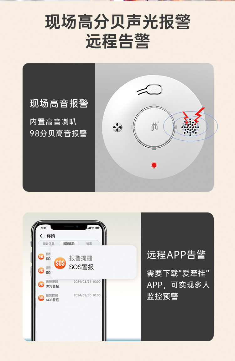 爱牵挂烟雾报警器消防专用火灾烟感探测器3c认证商用家用感应烟感警报器HA08
