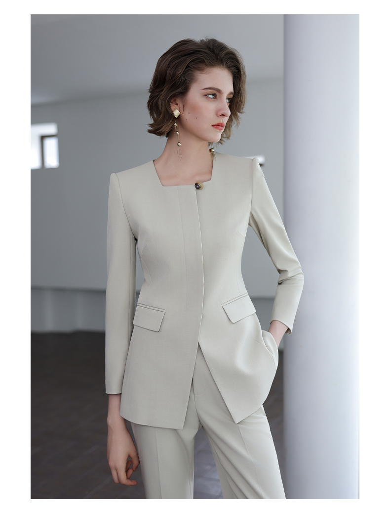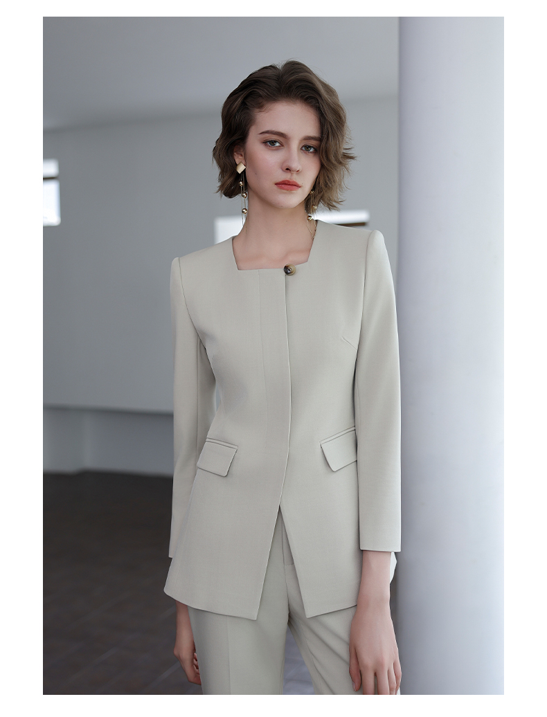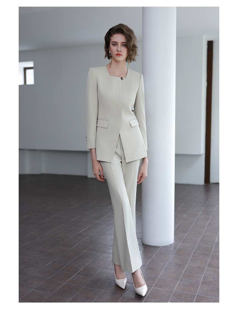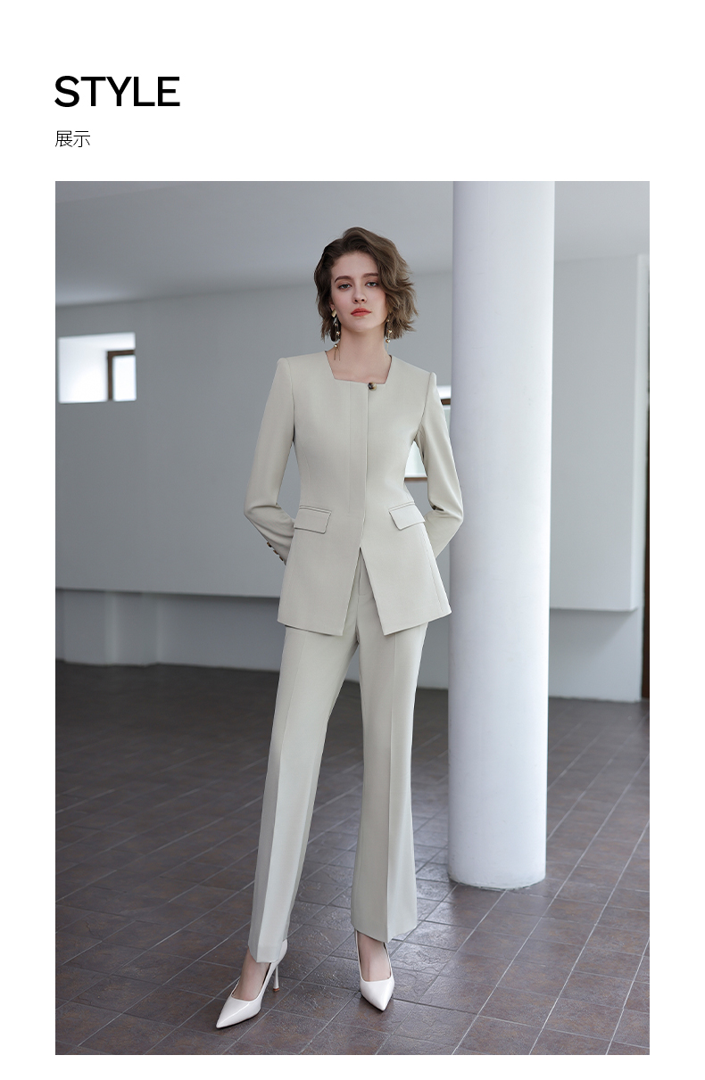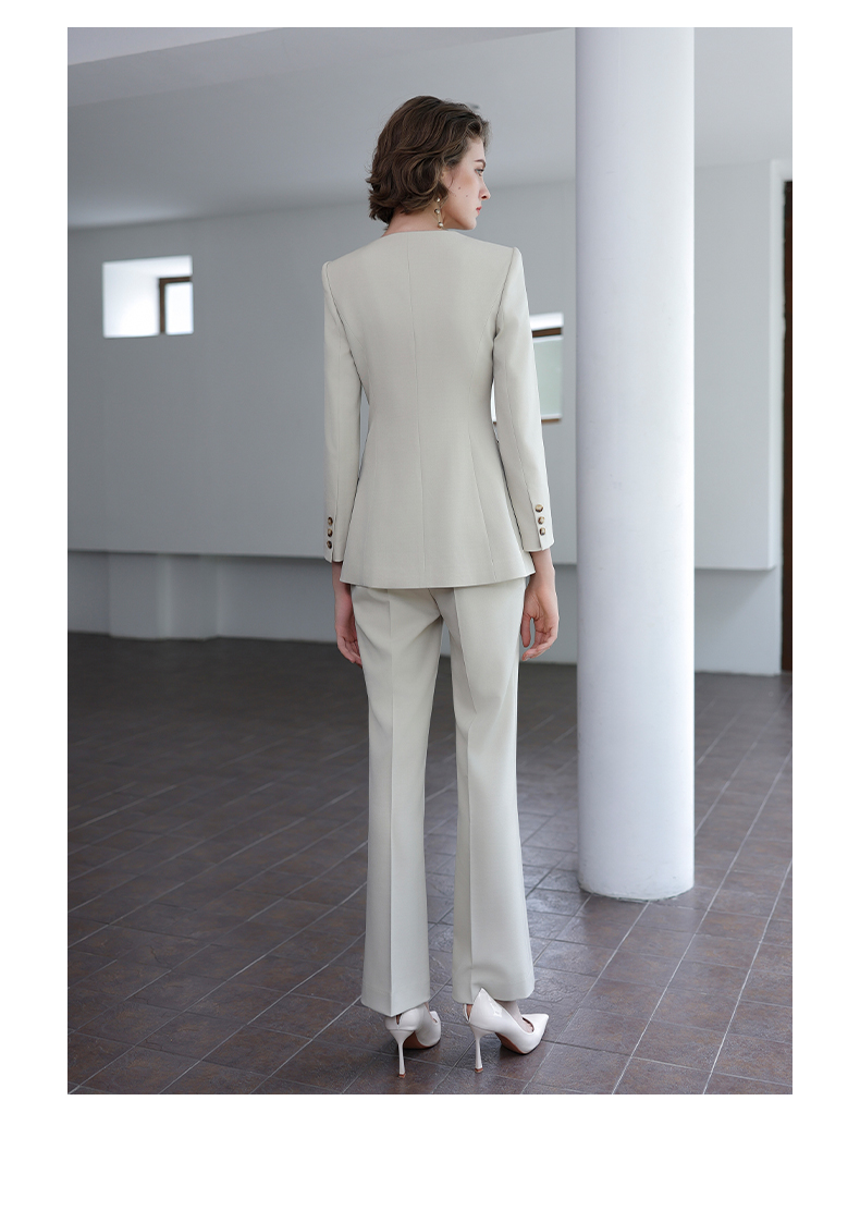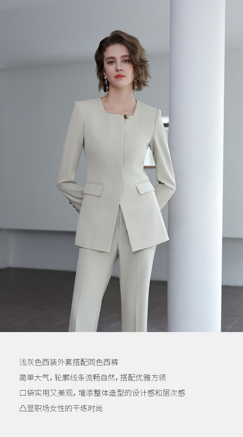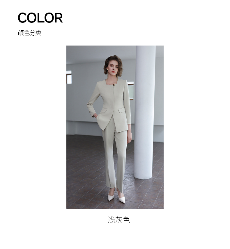 IWY/秋季新款浅灰色西装套装高级气质总裁西服正式场合微喇裤工装C14305+P34318