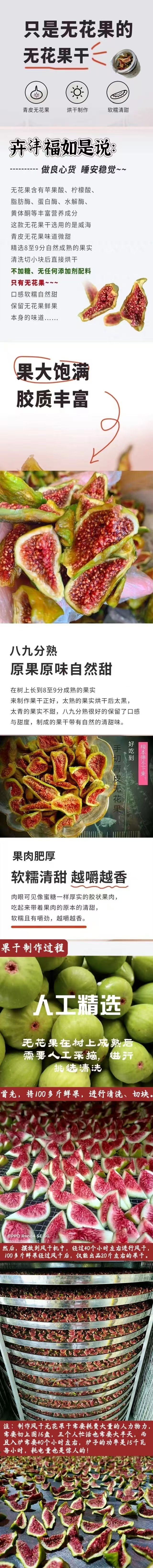 今年挑选九到十成熟的果子,清洗,手工压成饼状,低温风干三十余小时,出品的果饼更软糯,更香甜,更自然,青皮无花果特有的天然果酸使之甜而不腻,回味无穷,名副其实“树上的糖包子”。