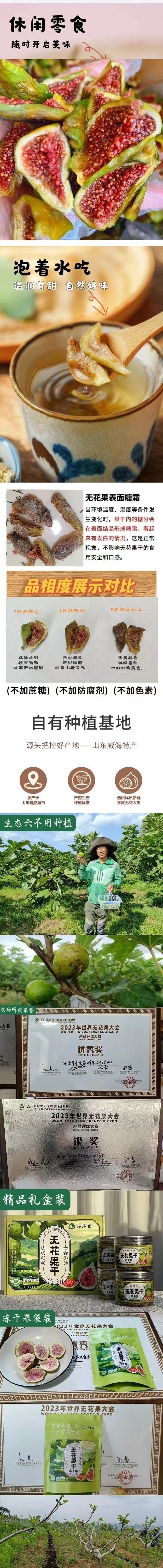 和柿饼一样,干制的无花果的糖分很高,适宜的温度就容易析出糖霜,糖霜在果子表面呈白色的薄霜层,其本质是多种天然的糖分随着水分蒸发在果干儿表面凝结形成的微晶聚合物,这是正常的物理现象,不是发霉了,了解这个知识点,不要造成误解,