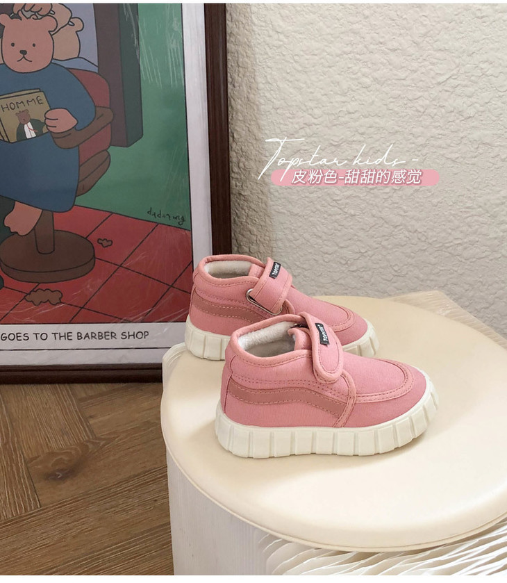 【2双减10 3双减20】【软糯可爱 高帮加绒】TOPSTAR 儿童魔术贴高帮加绒帆布鞋1156