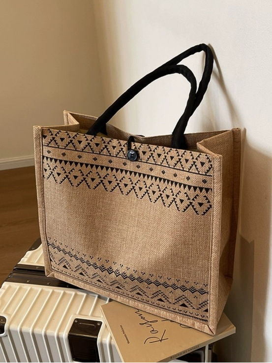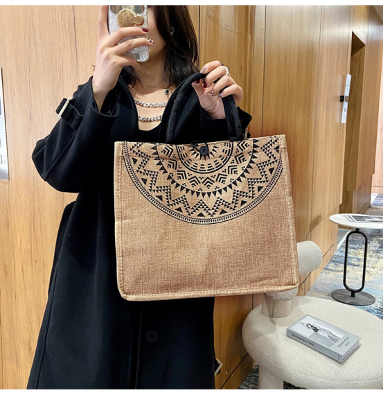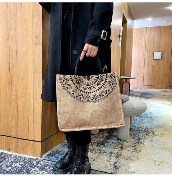 时尚与实用的完美结合! 我们推荐这款大容量的亚麻托特包 不仅环保 而且时尚实用!