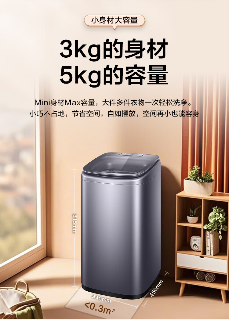 海尔(Haier)全自动迷你波轮5KG 直驱变频 内衣洗衣机小型洗内裤袜子 婴儿 XQB50-B278S