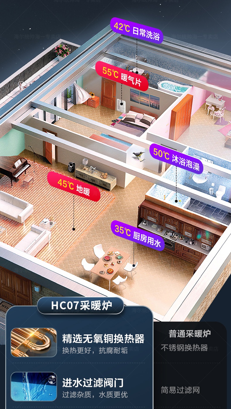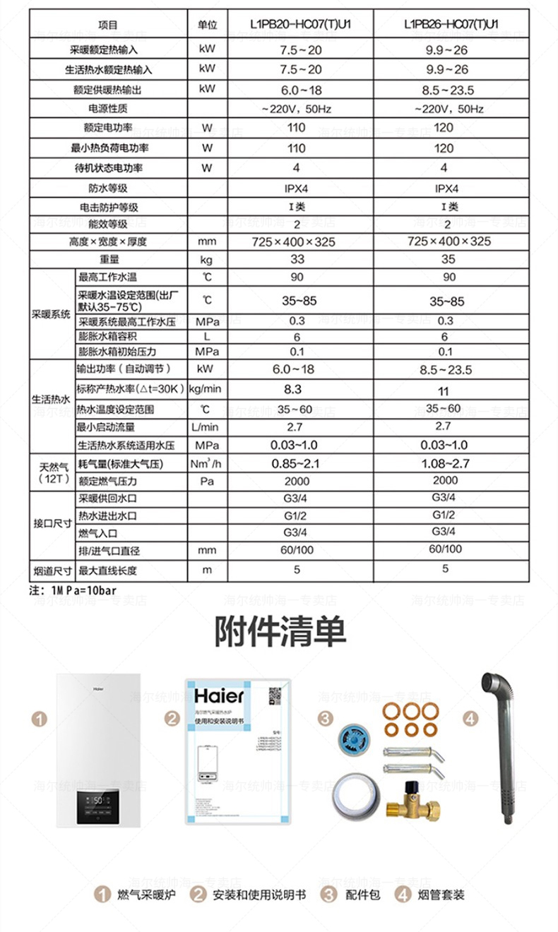 【现货速发】海尔(Haier)壁挂炉家用燃气采暖炉锅炉地暖全屋热水洗浴采暖两用L1PB26-HC07(T)U1(180平以内)