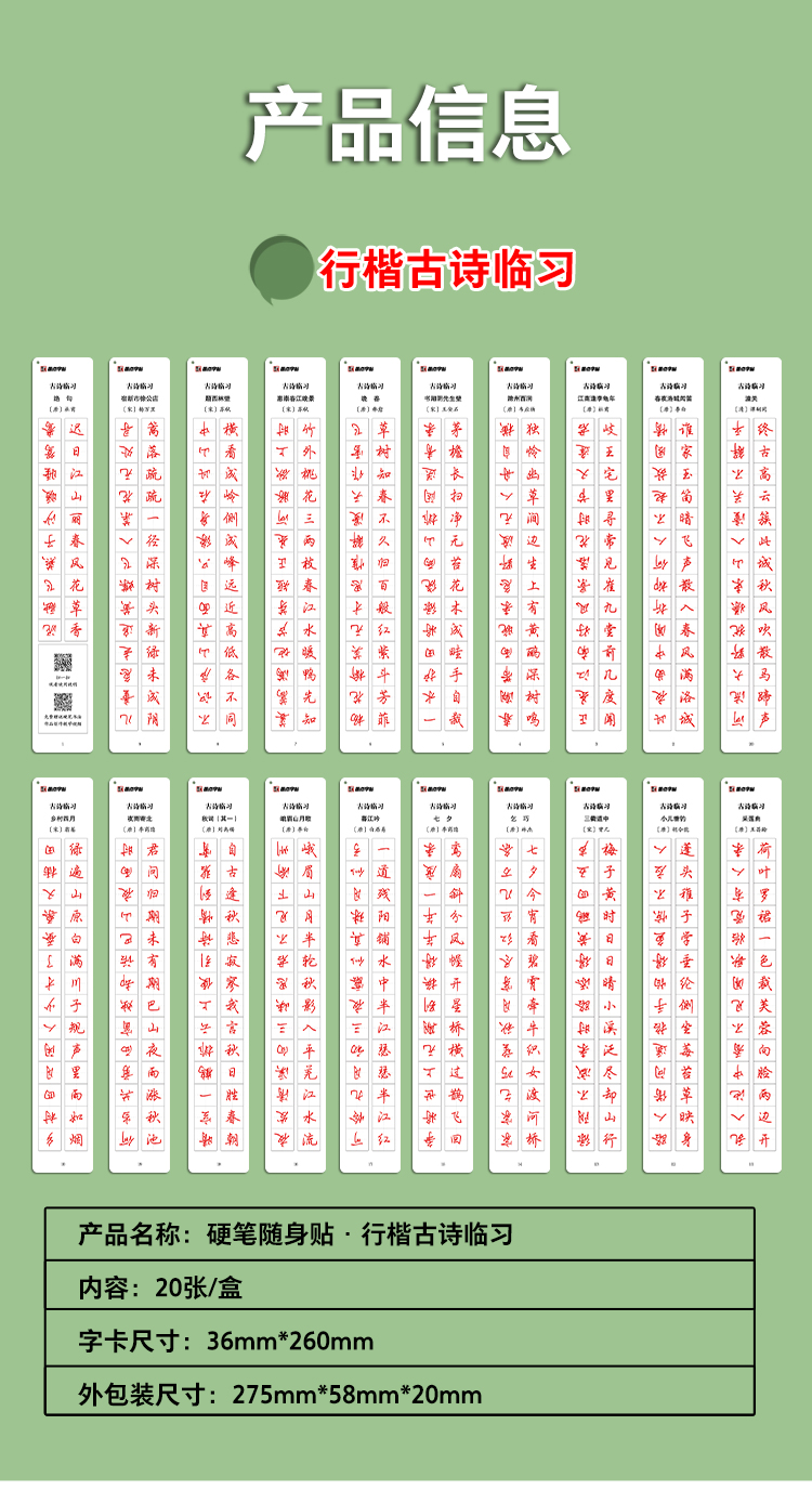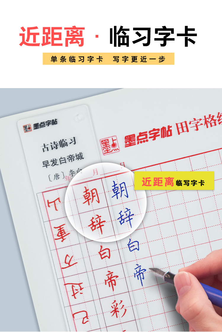 墨点近距离临帖卡荆霄鹏行楷字帖古诗词透明临摹字卡成人大学生初学者练字硬笔随身帖男女生字体霸气练字帖成年行楷钢笔字帖练字卡