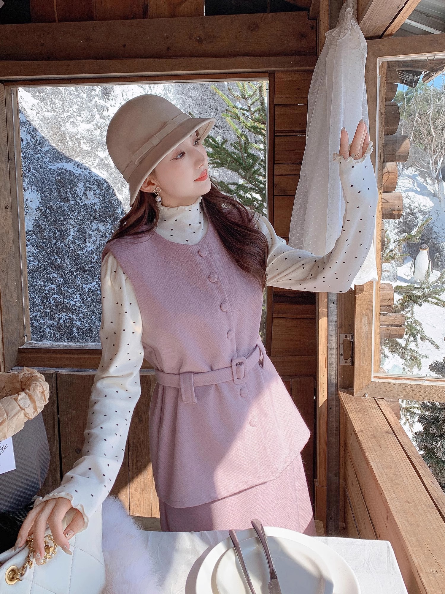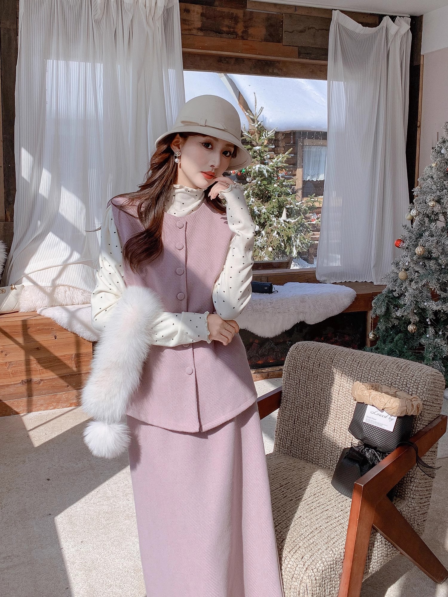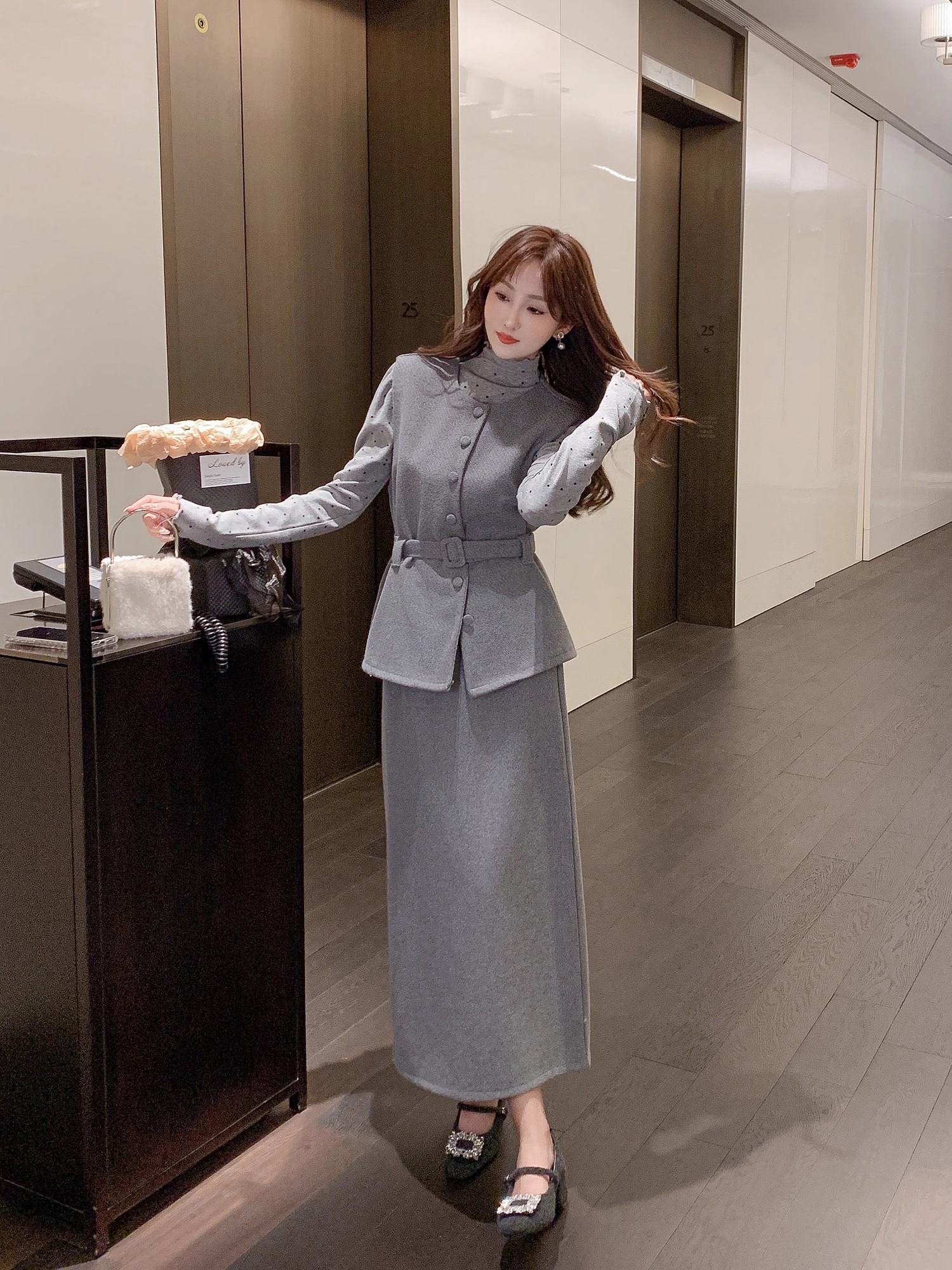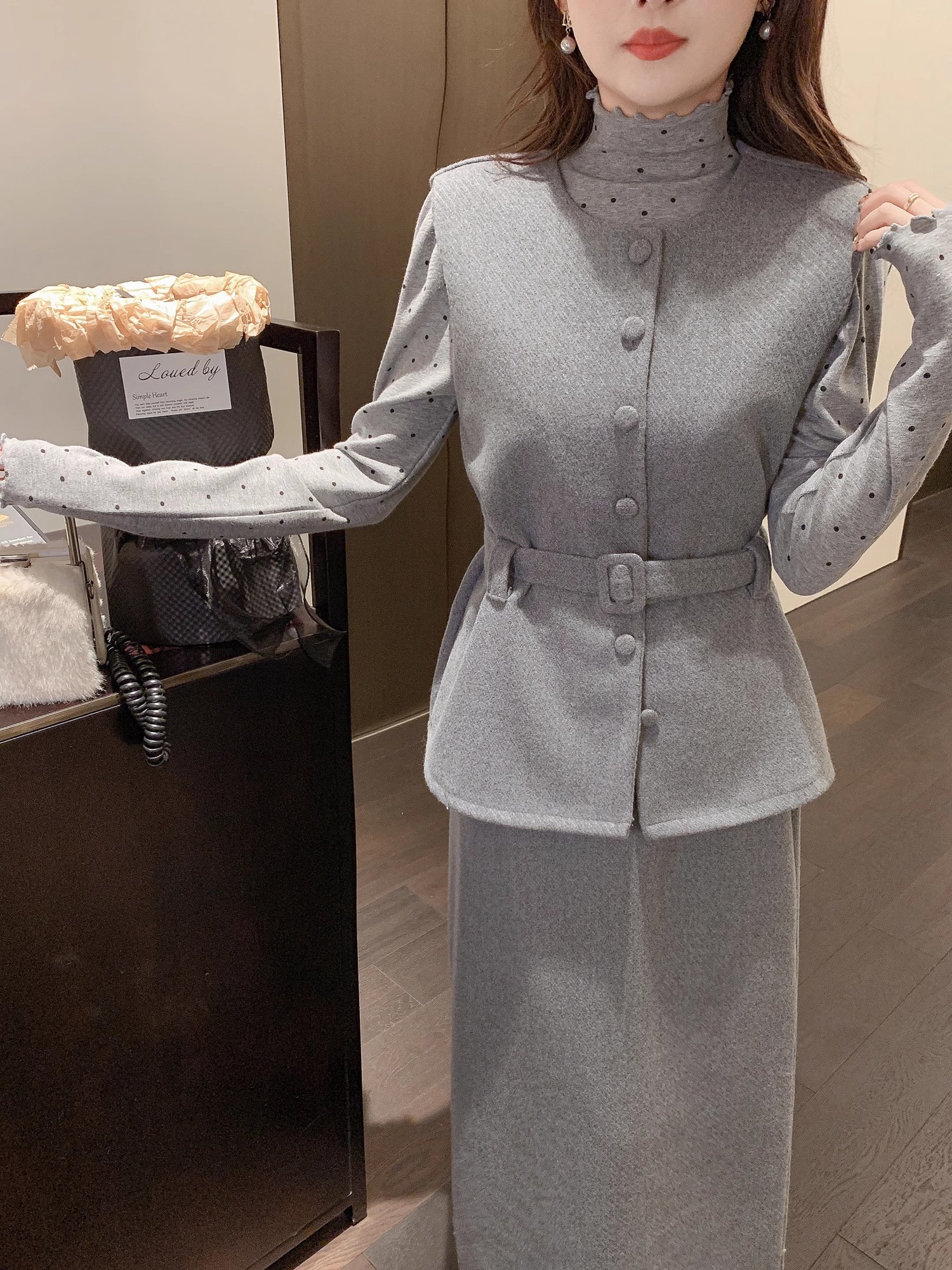 张心子【留洋千金】气质高级感秋冬新款马甲半身裙两件套套装 U2411039