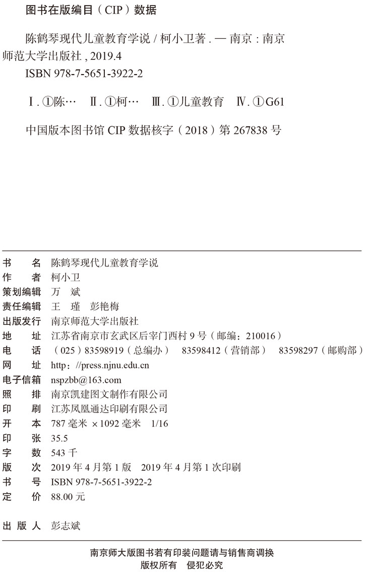 陈鹤琴现代儿童教育学说 柯小卫 著 南京师范大学出版社