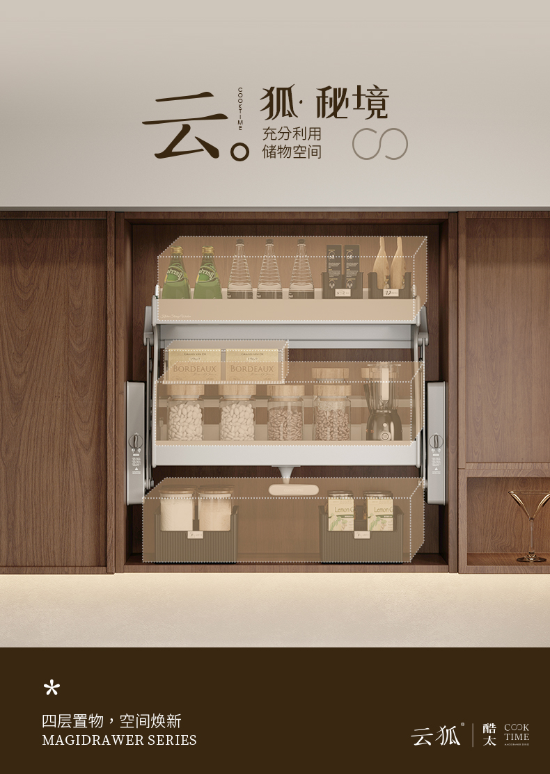 - 酷太坚持8年自主研发,已获得专利证书130项,拥有一套领先市场的厨房收纳系统,为千万中国家庭解决厨房脏乱差,缔造厨房新生活。