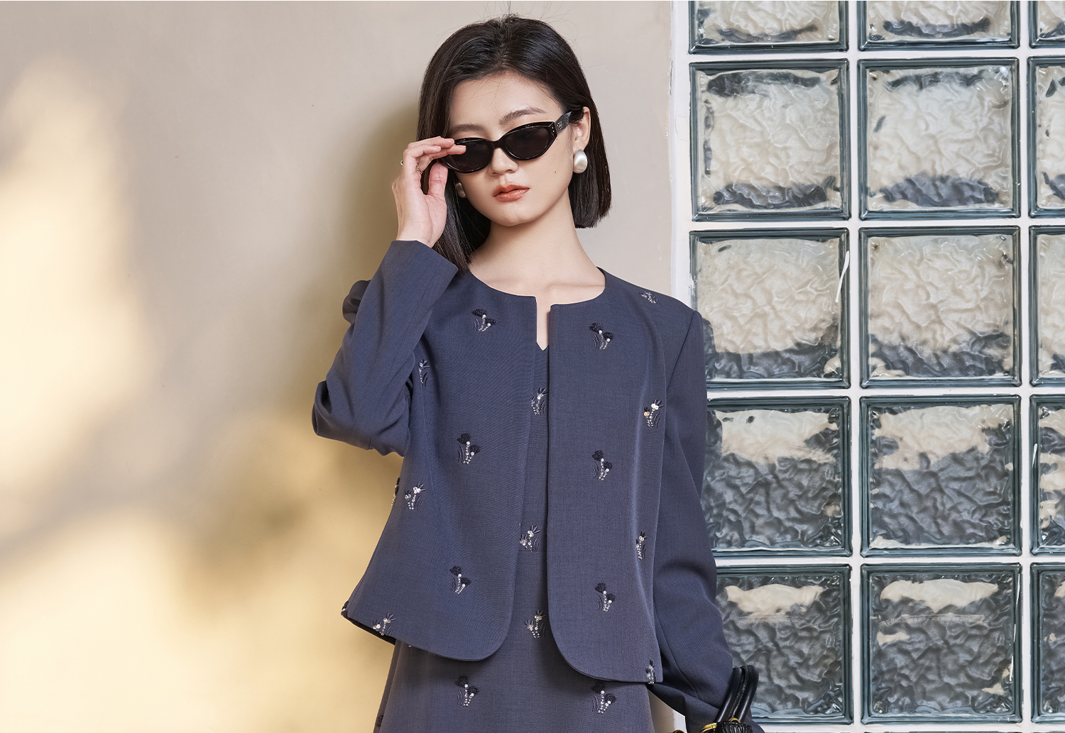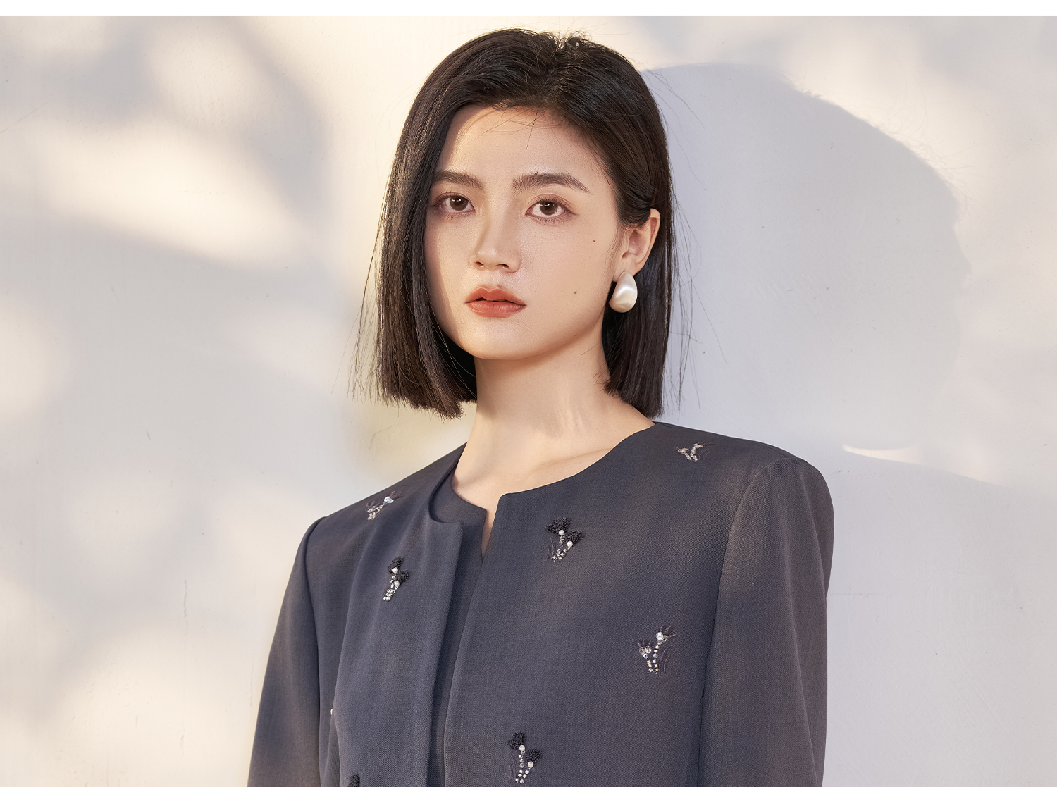 米思阳2026春季新款小众设计感钉珠刺绣西装时髦老钱风短外套4989