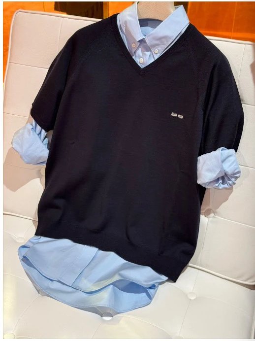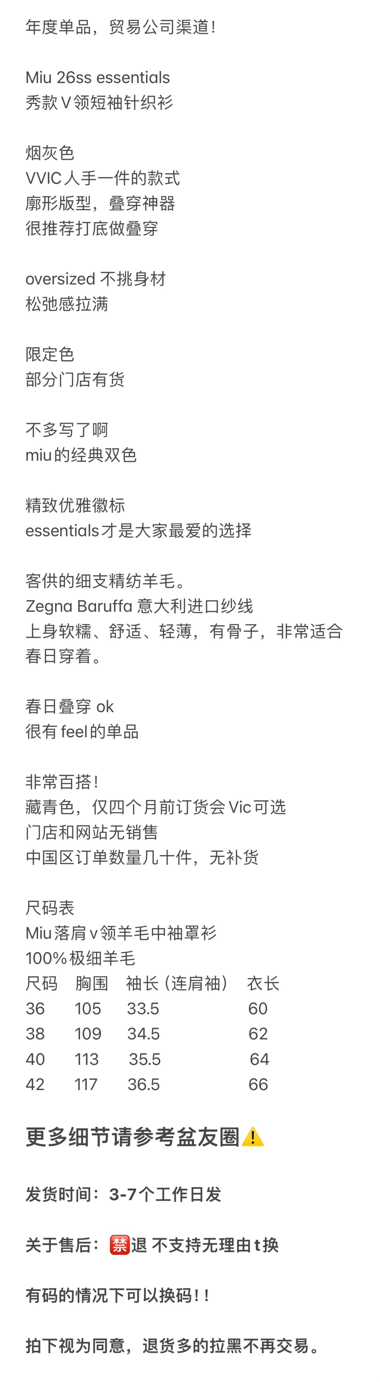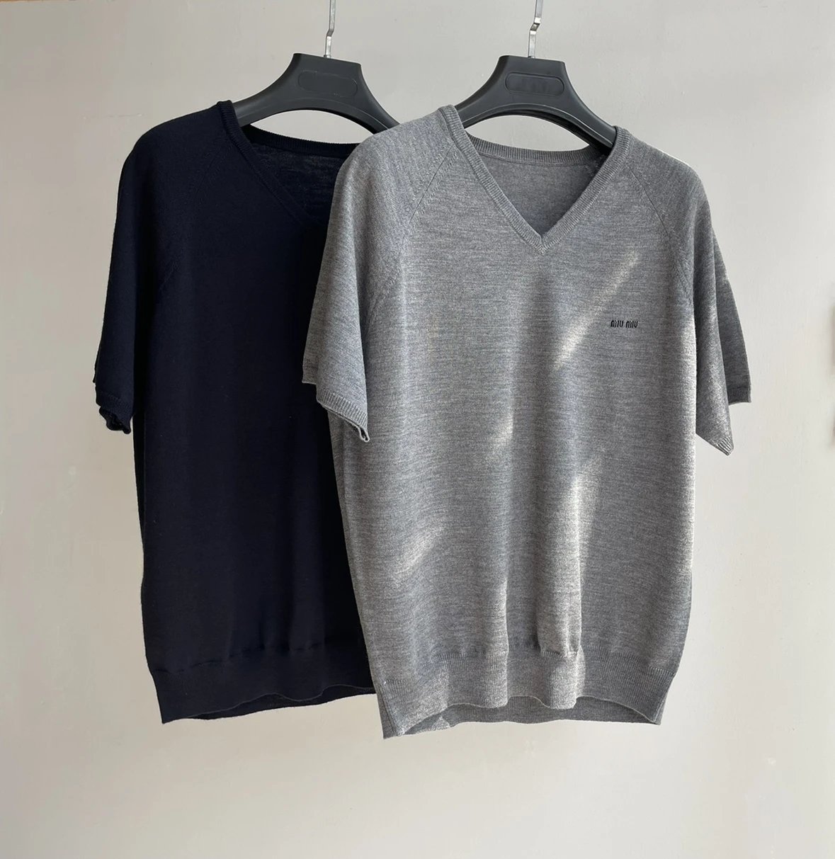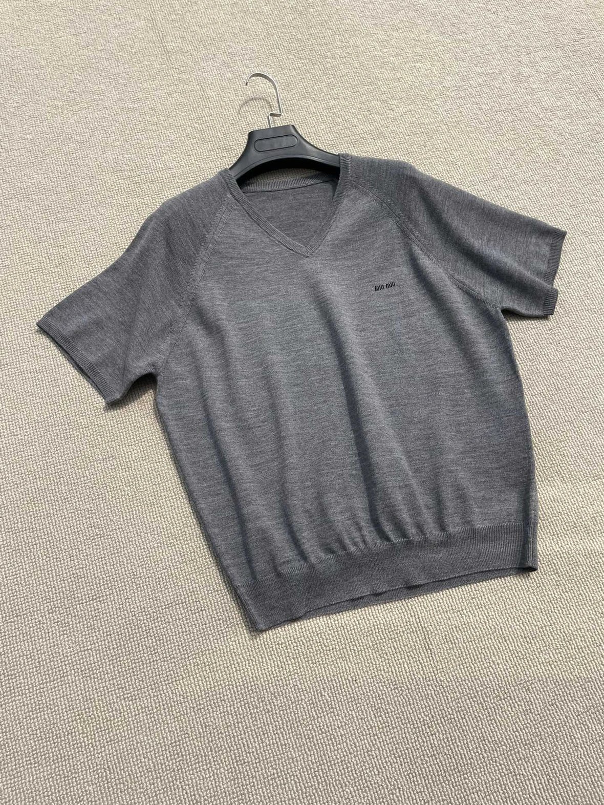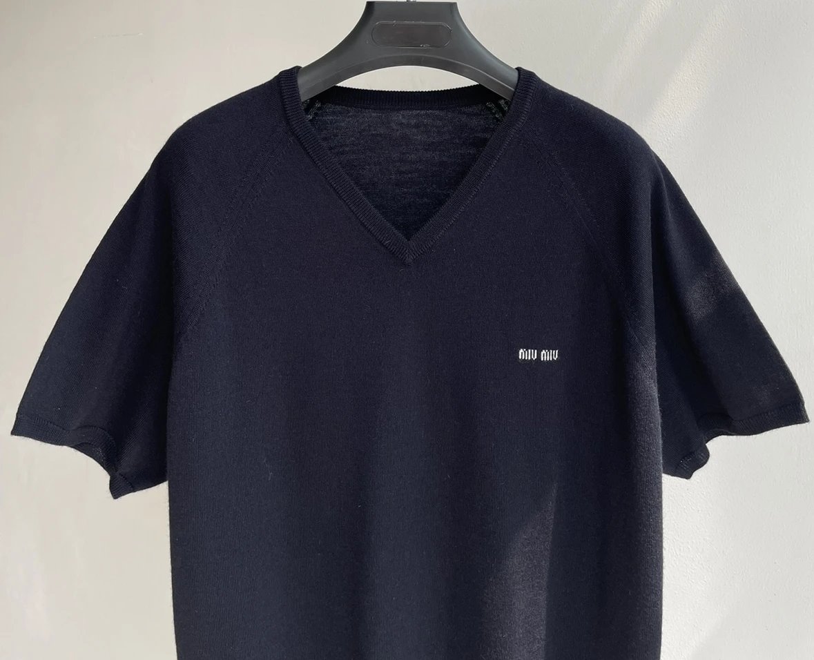 重磅! 贸易公司 缪秀款V领短袖针织短袖 essentials羊毛针织短袖 叠穿神器