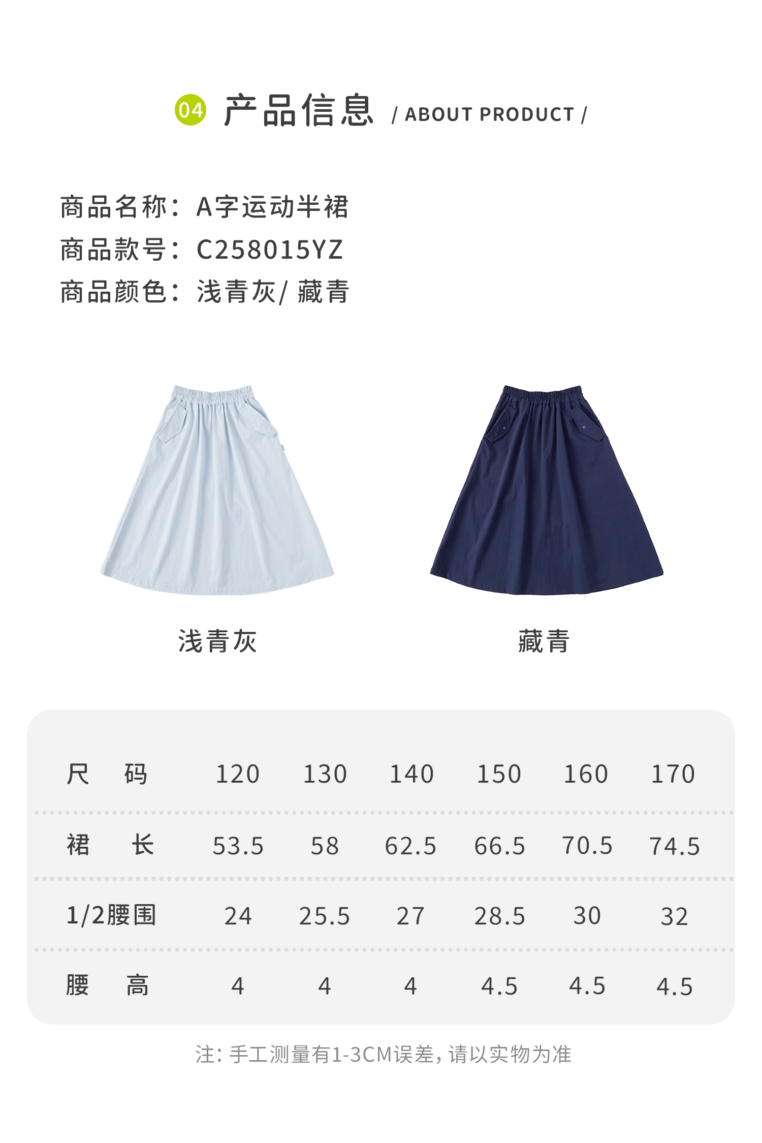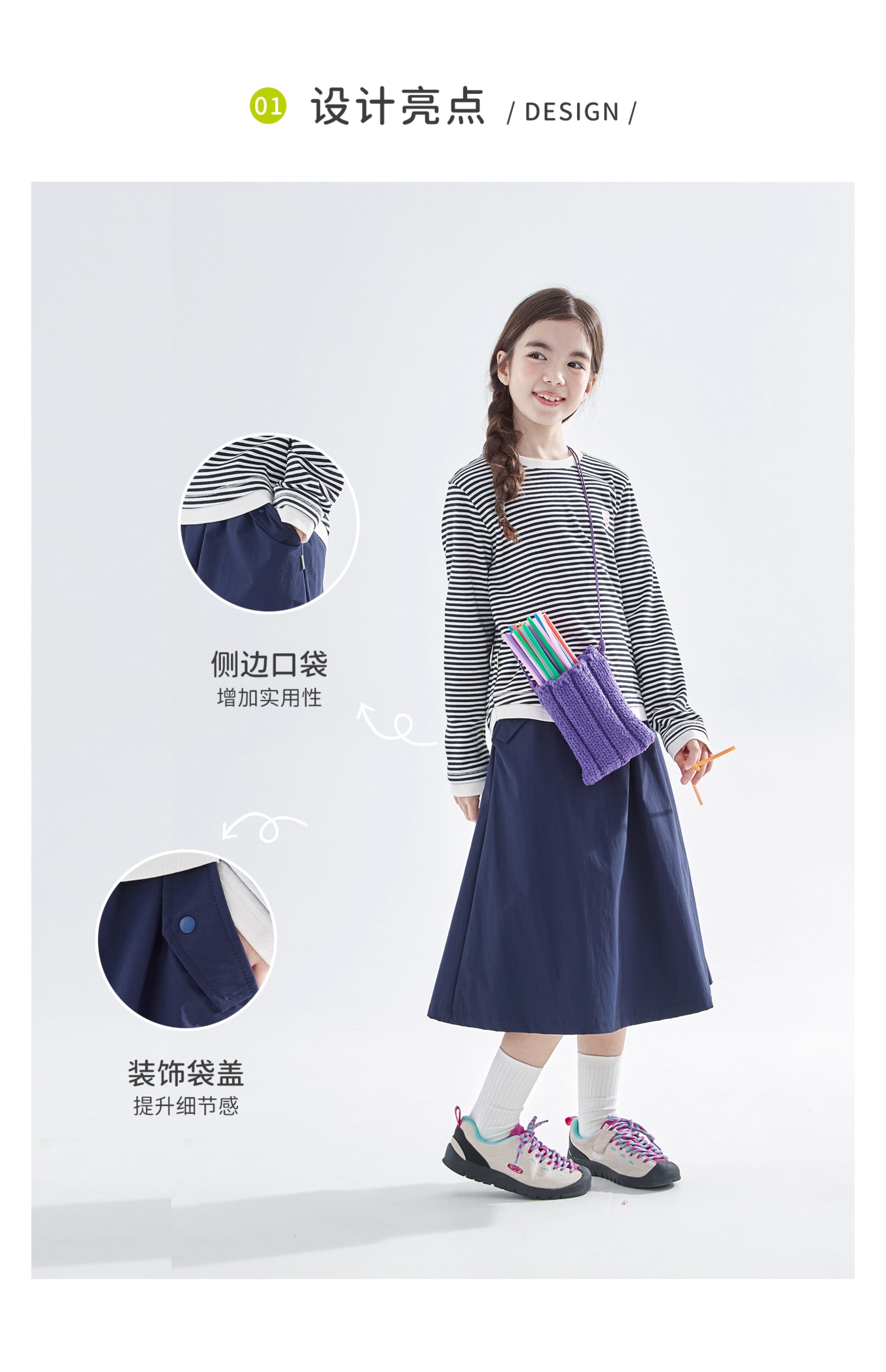 cicochild25年秋季新款女童A字运动半裙防泼水锦纶微弹简约休闲裙