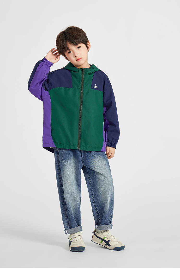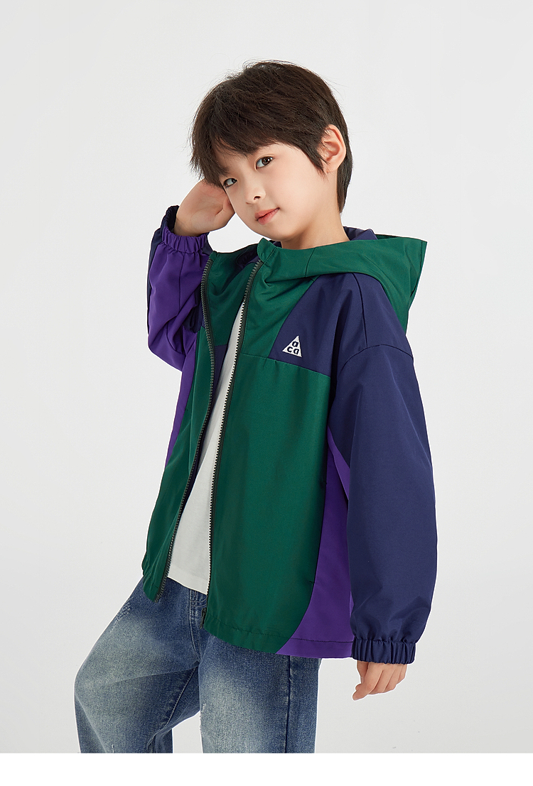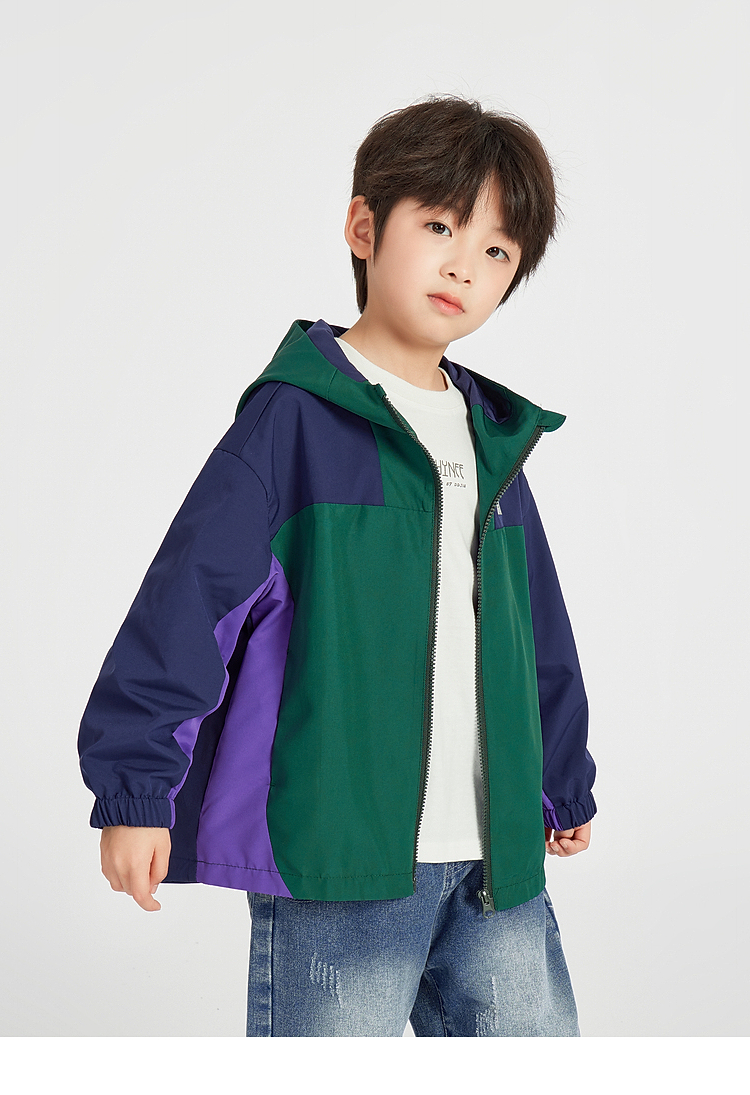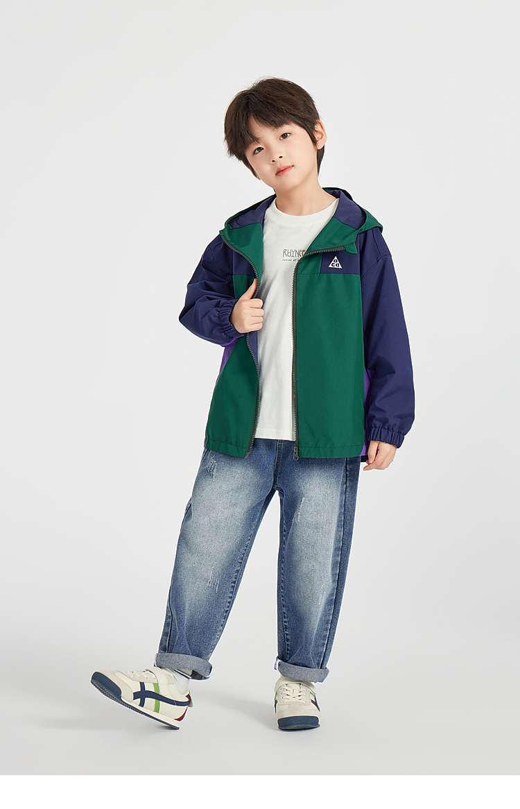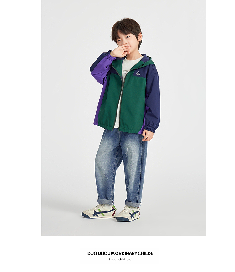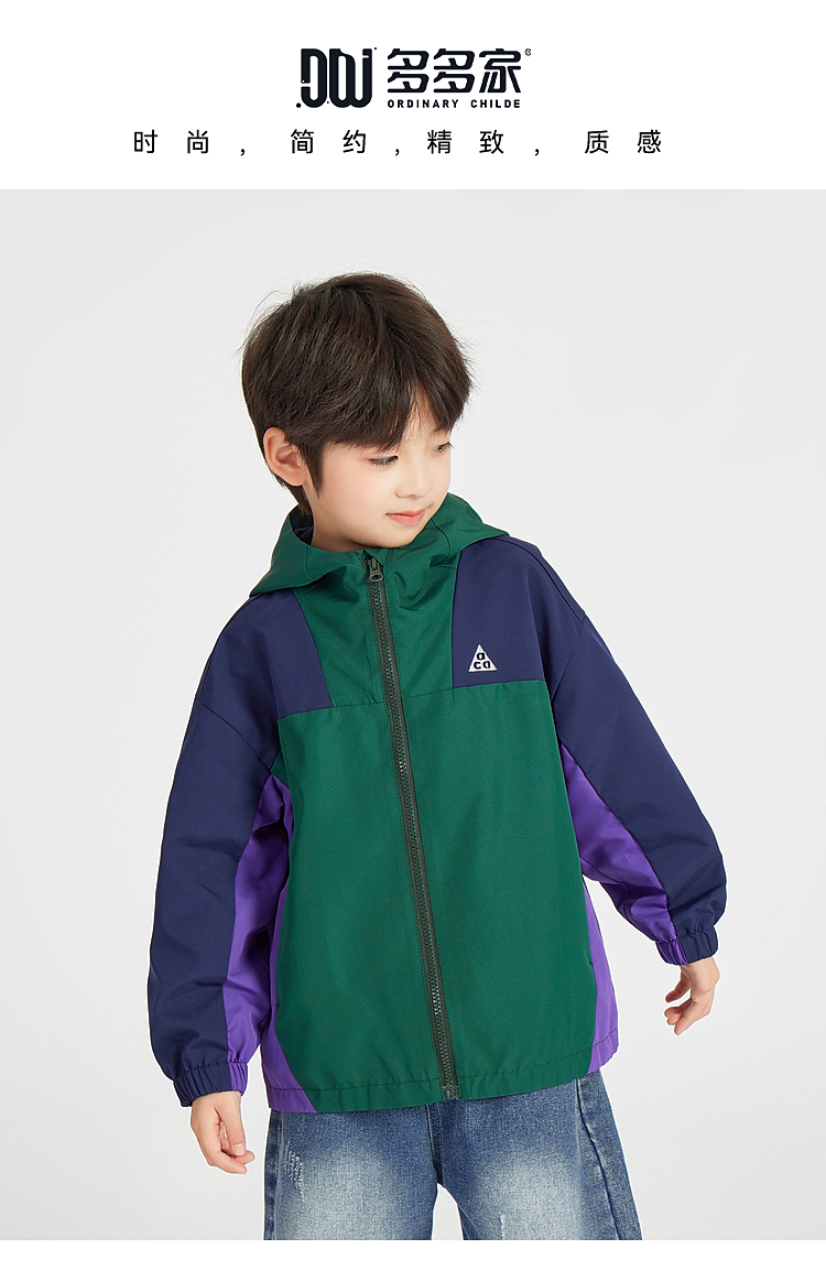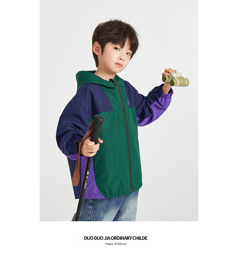 【团购价99.9】多多家男童外套连帽春秋季2025新款儿童中大童撞色拼接户外上衣潮10210