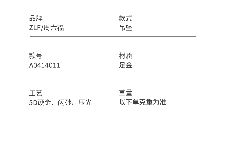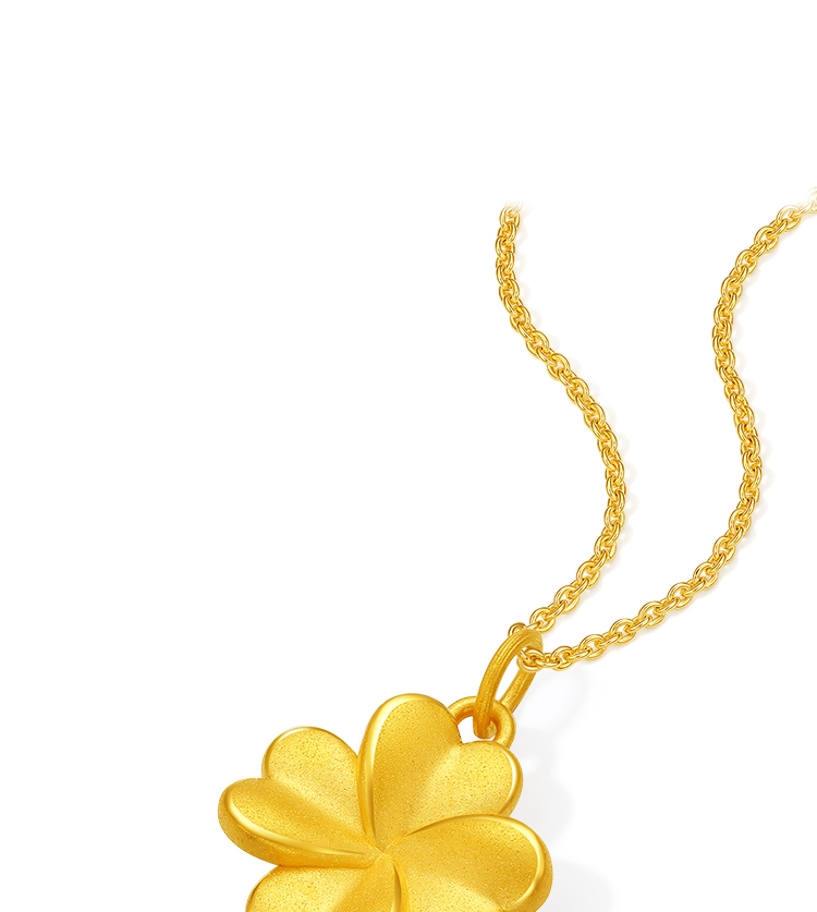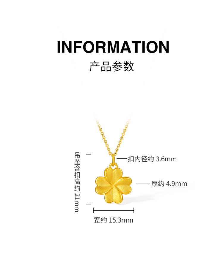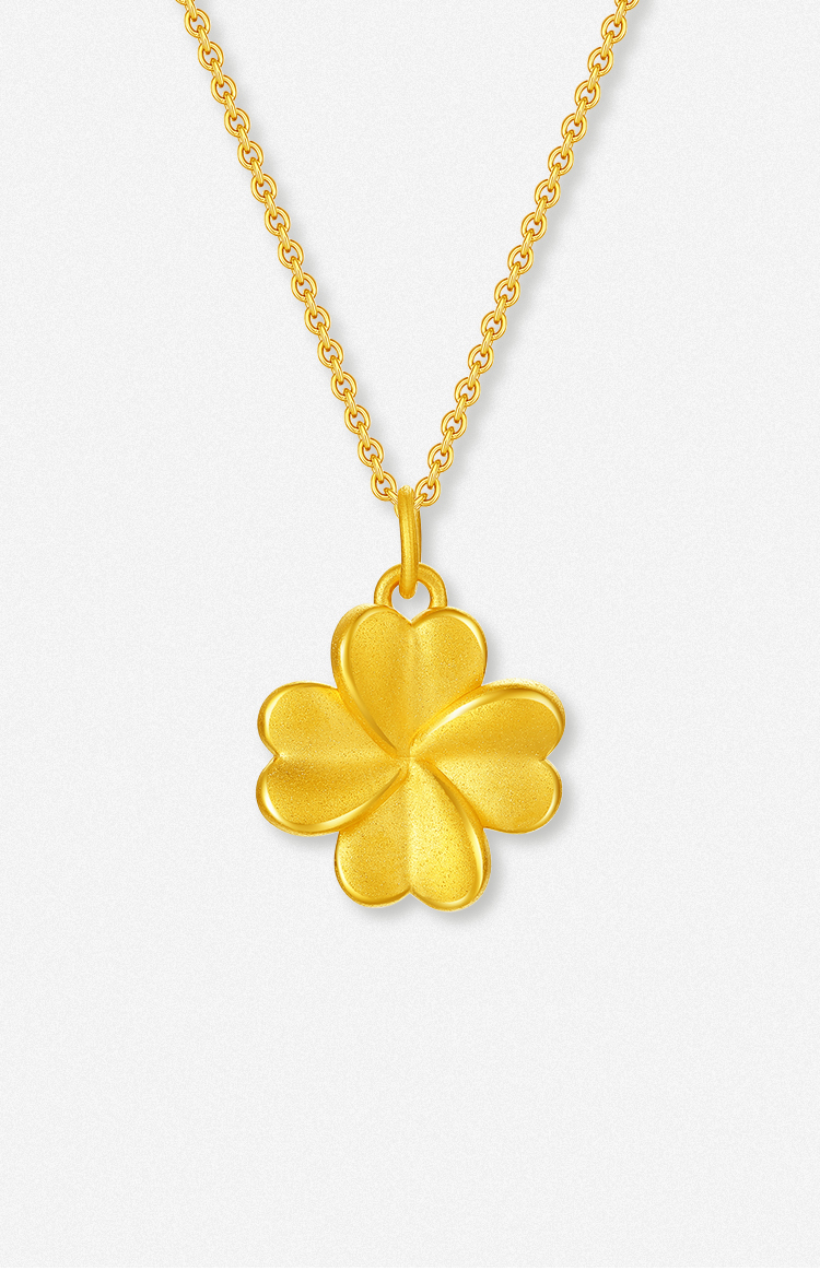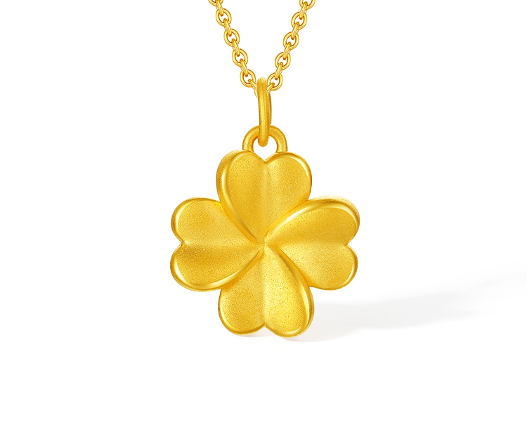 周六福黄金吊坠女款5d硬金定价四叶草幸运草项链节日礼物官方