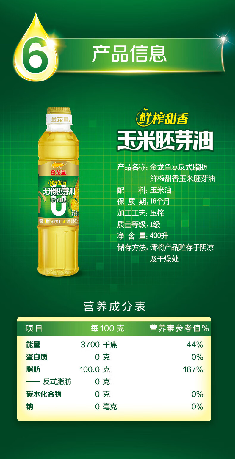 金龙鱼植物甾醇压榨甜香玉米胚芽油 400ML