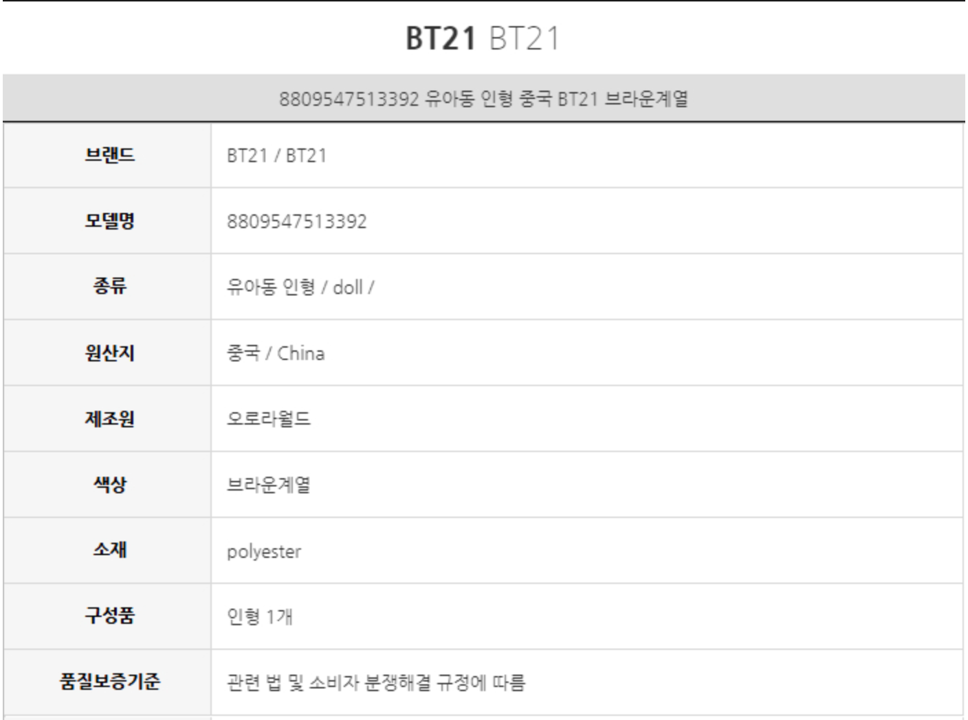 BT21 SHOOKY BABY照明布袋吊饰娃娃