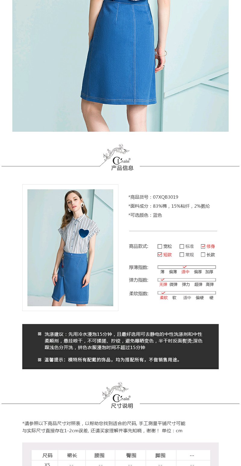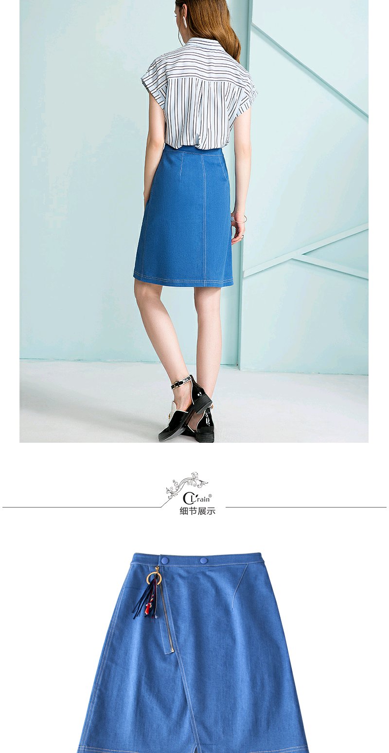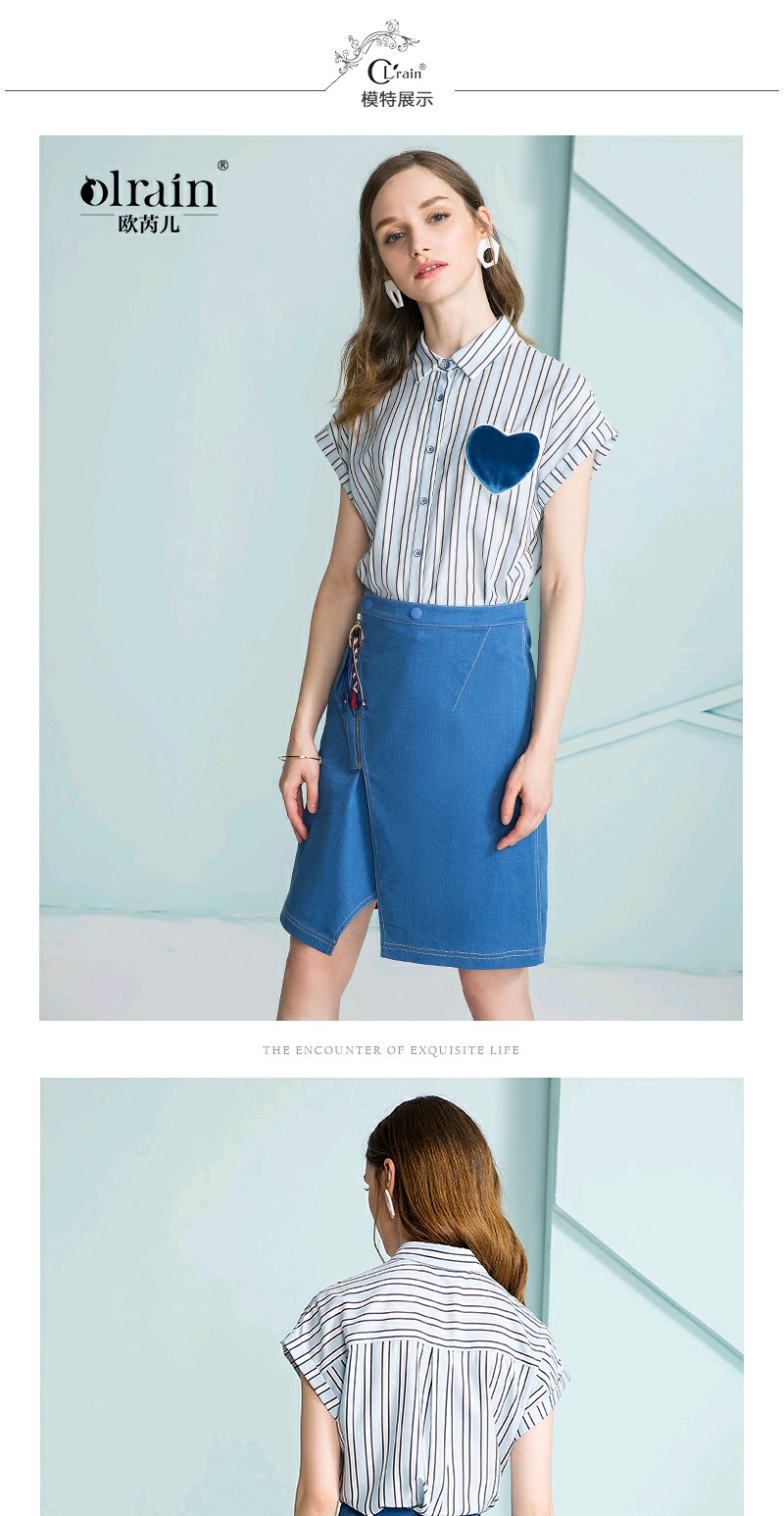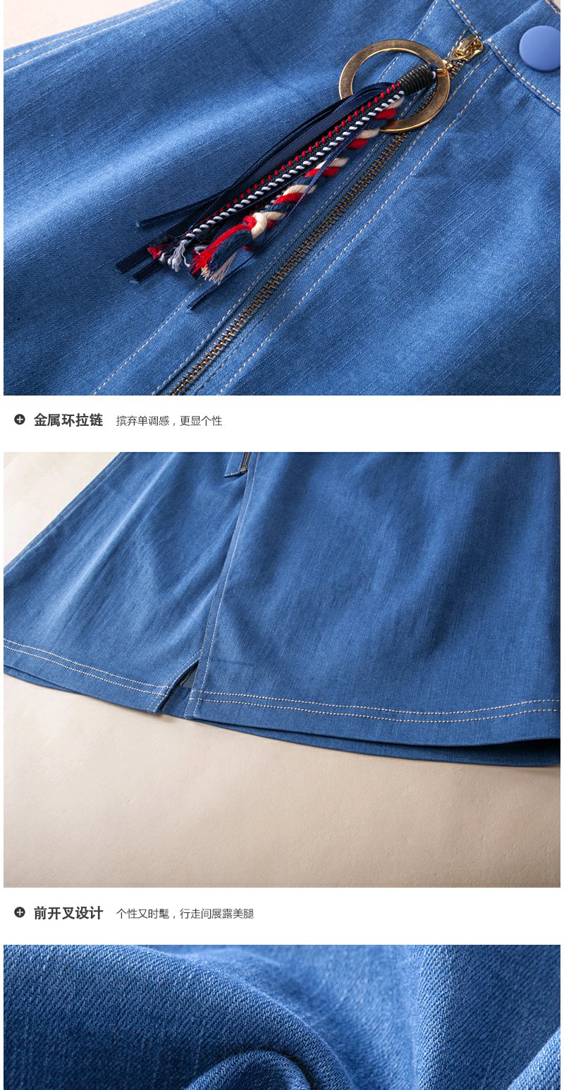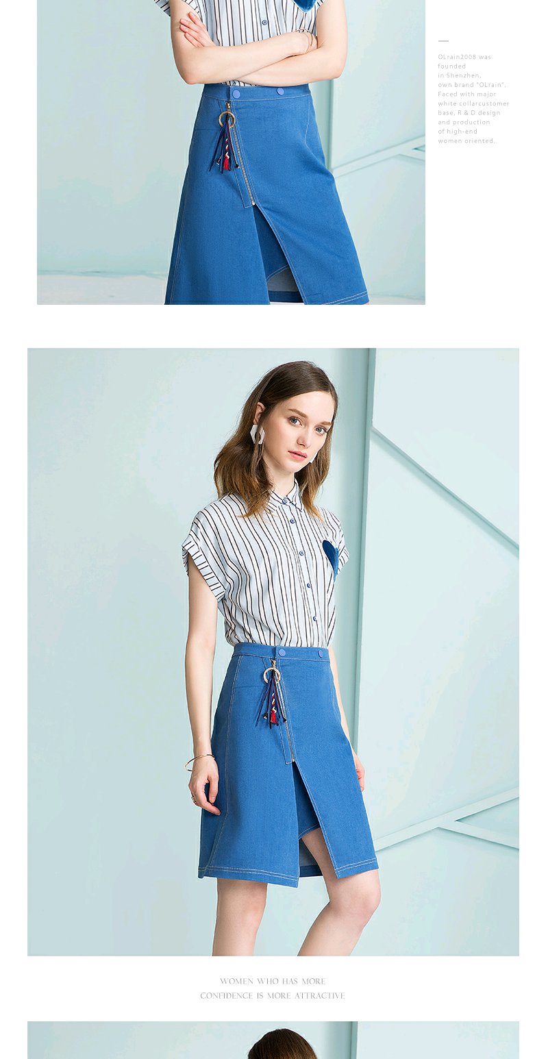 欧芮儿 开叉不规则牛仔裙女收腰a字半身裙