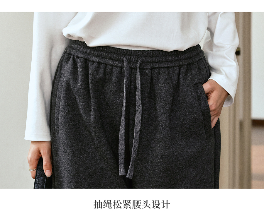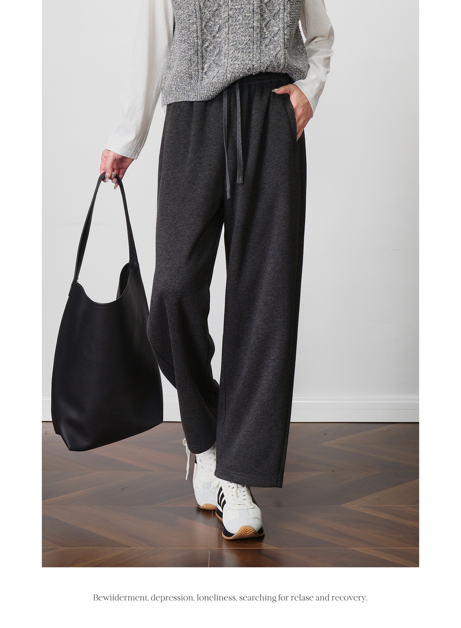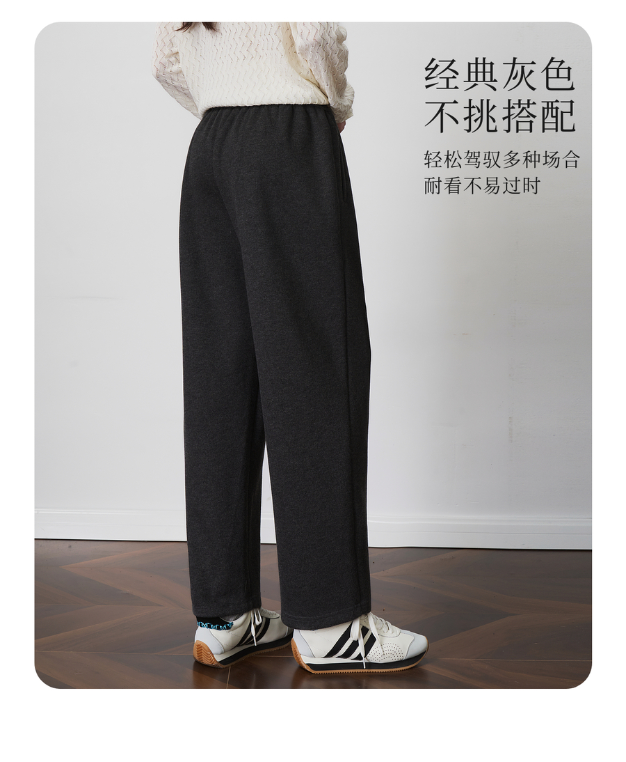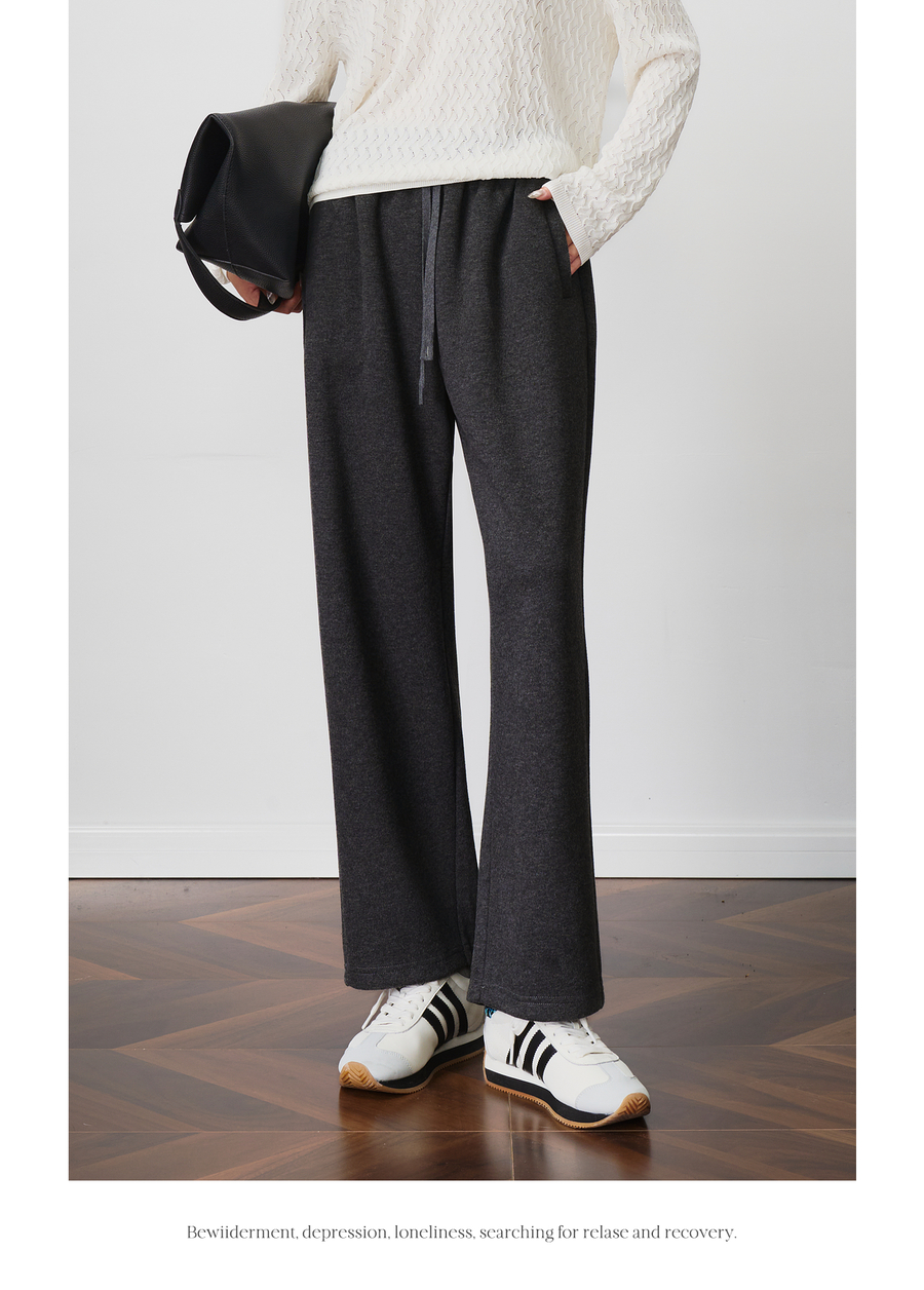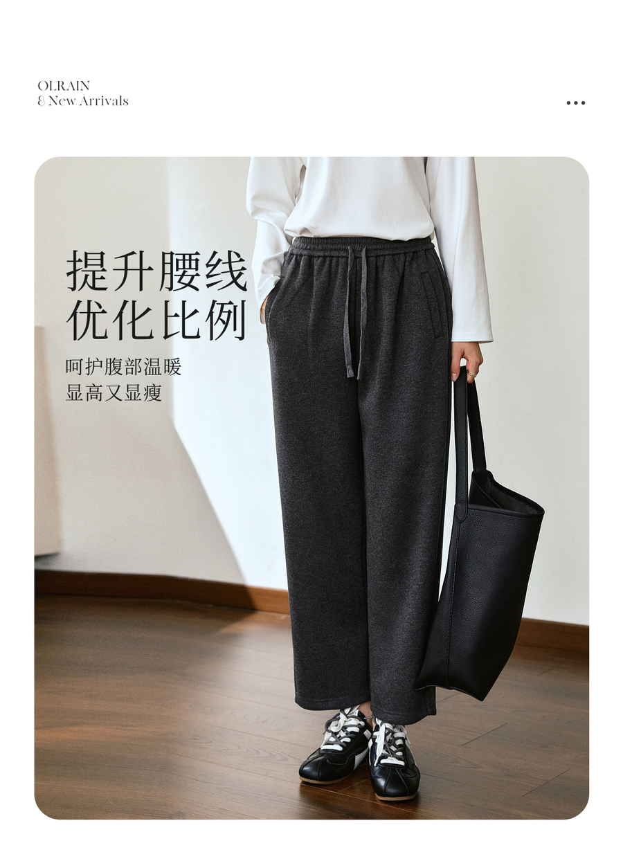 OLrain欧芮儿松紧腰磨毛针织直筒裤女秋季2025新款显瘦抽绳裤子
