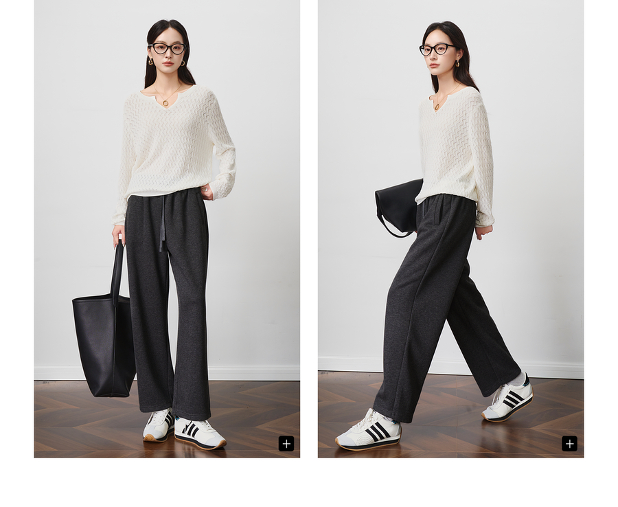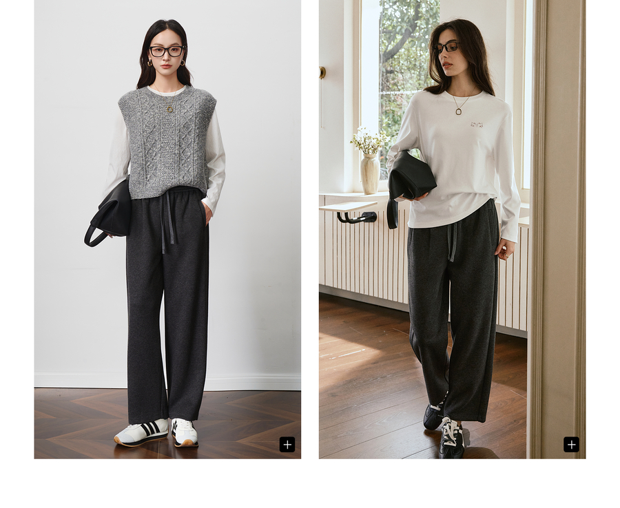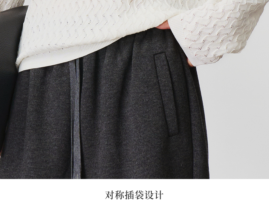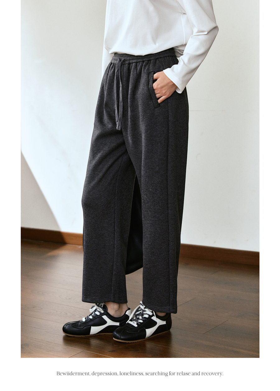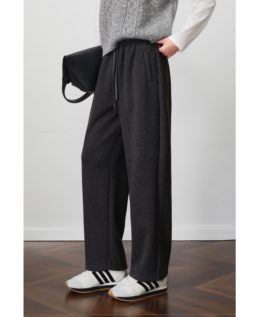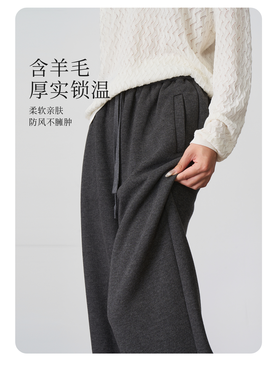 OLrain欧芮儿松紧腰磨毛针织直筒裤女秋季2025新款显瘦抽绳裤子