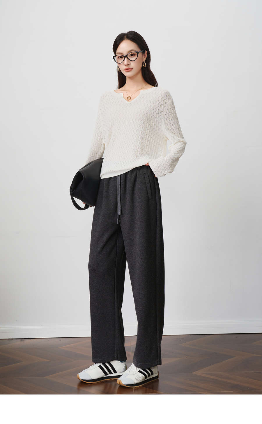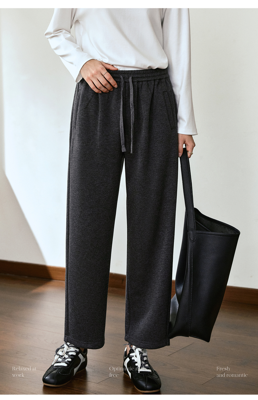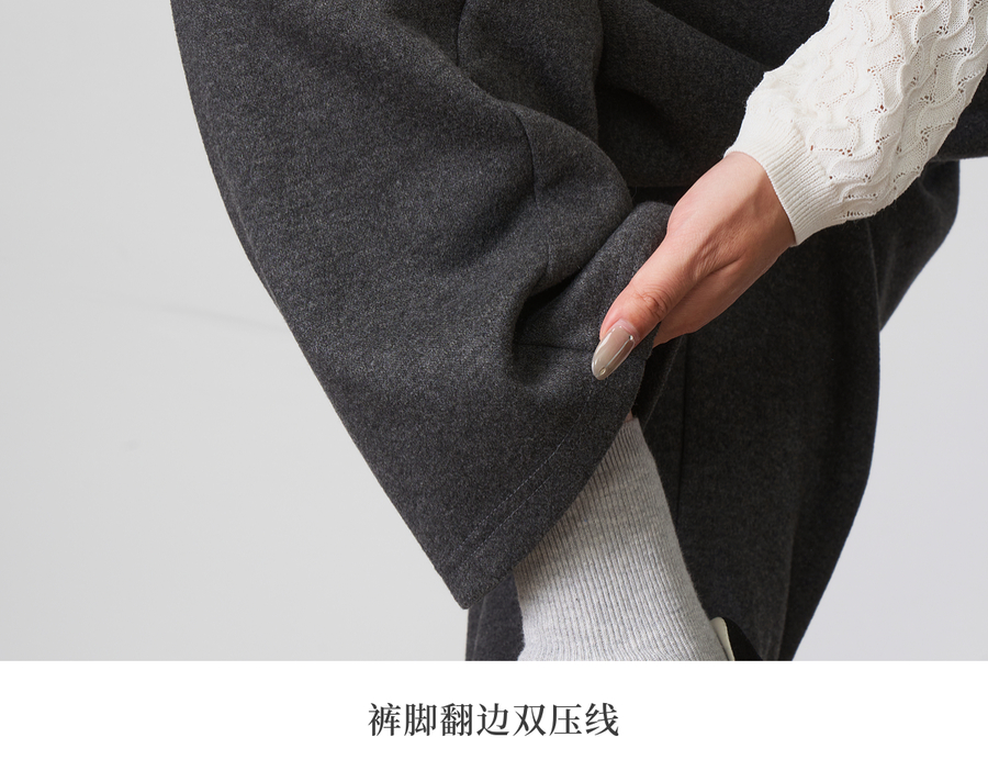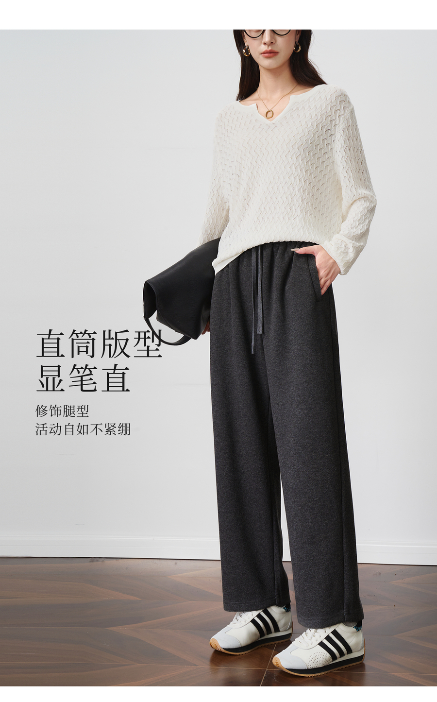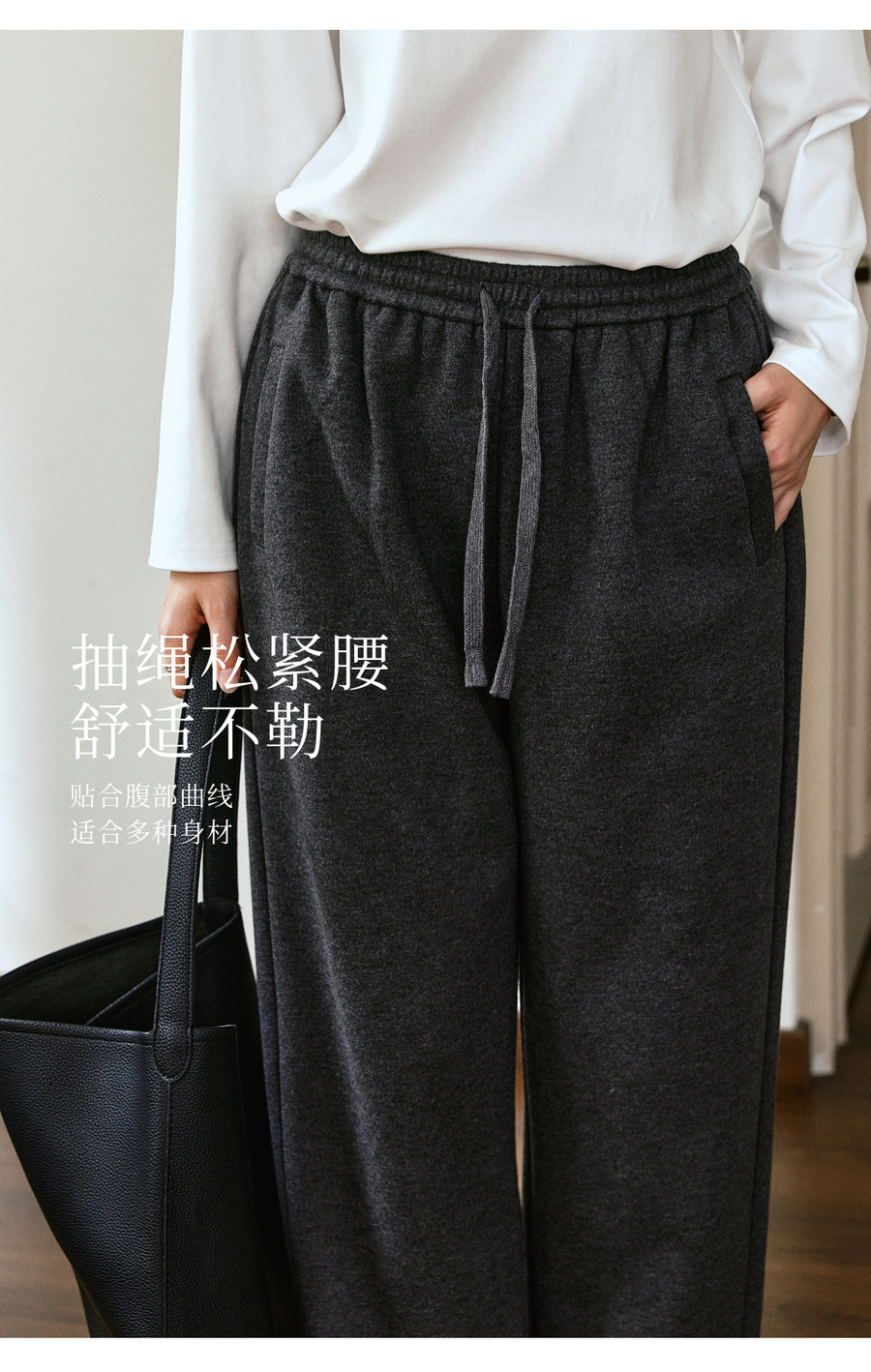 OLrain欧芮儿松紧腰磨毛针织直筒裤女秋季2025新款显瘦抽绳裤子