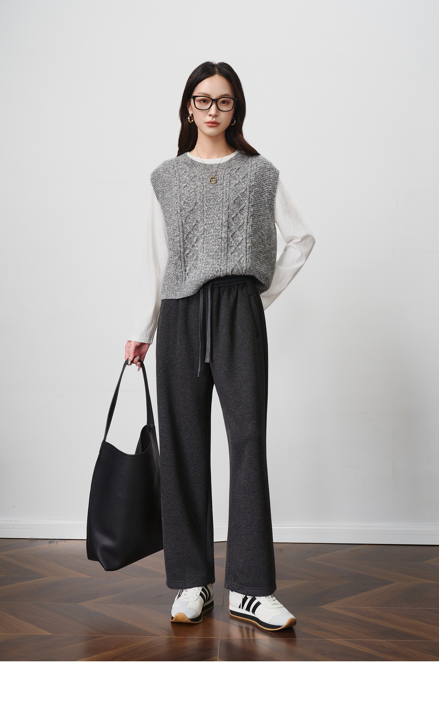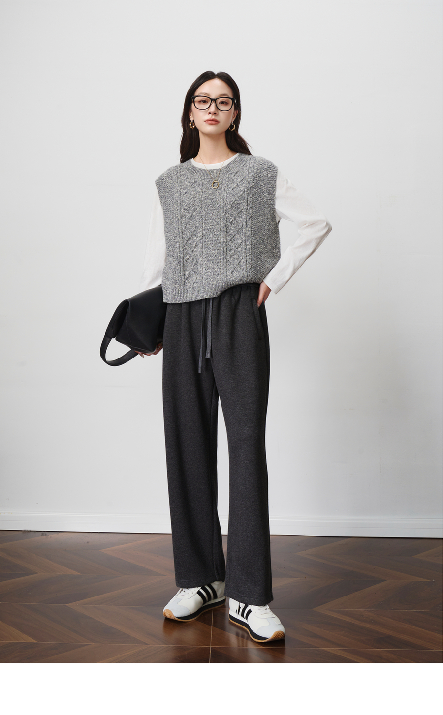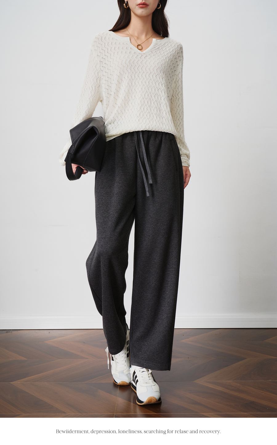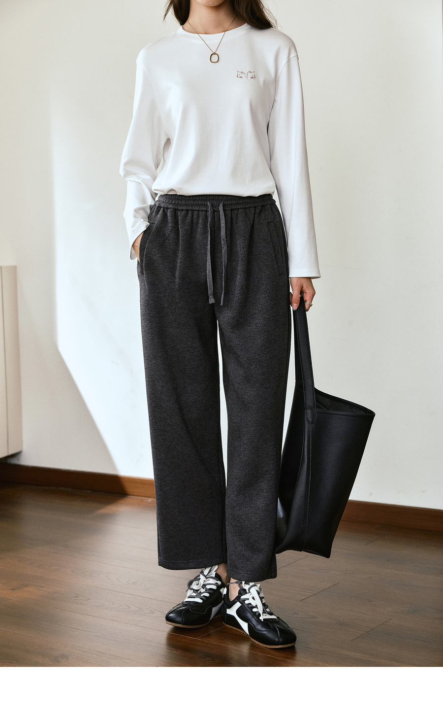 OLrain欧芮儿松紧腰磨毛针织直筒裤女秋季2025新款显瘦抽绳裤子