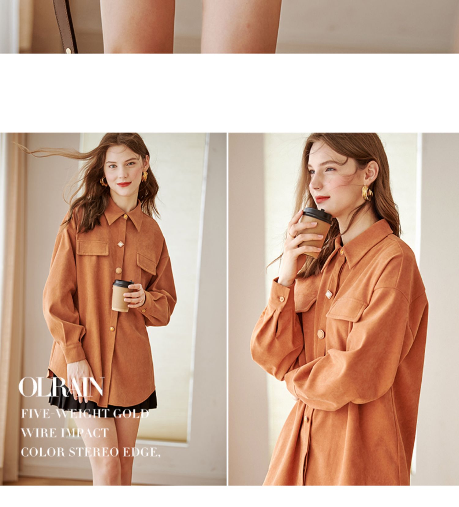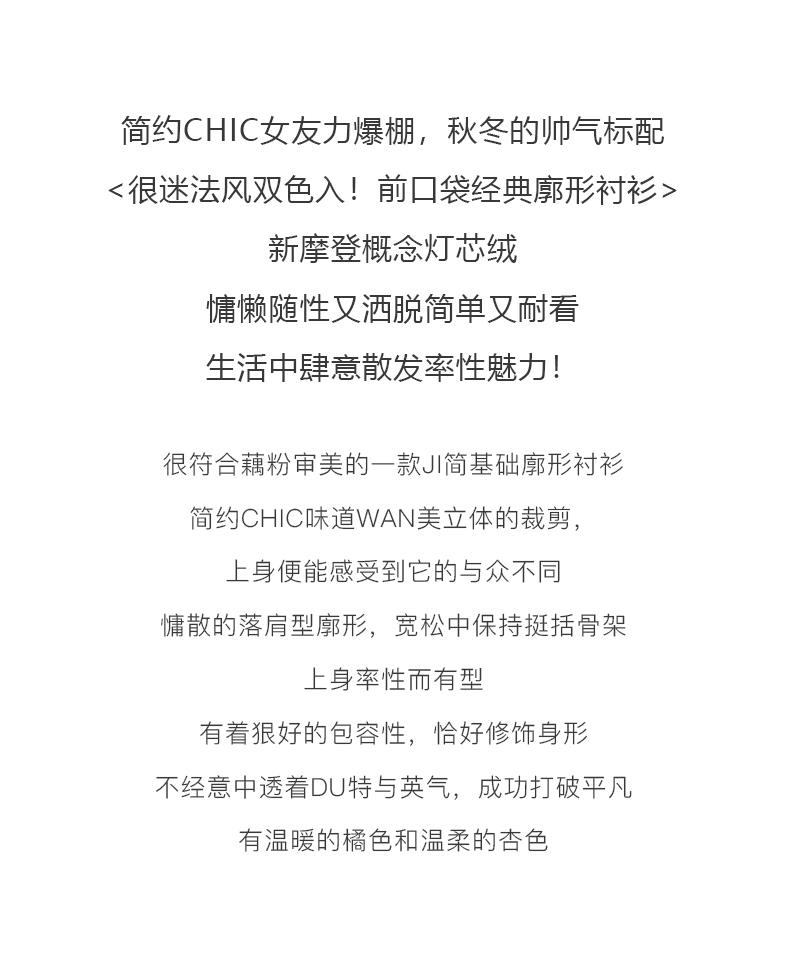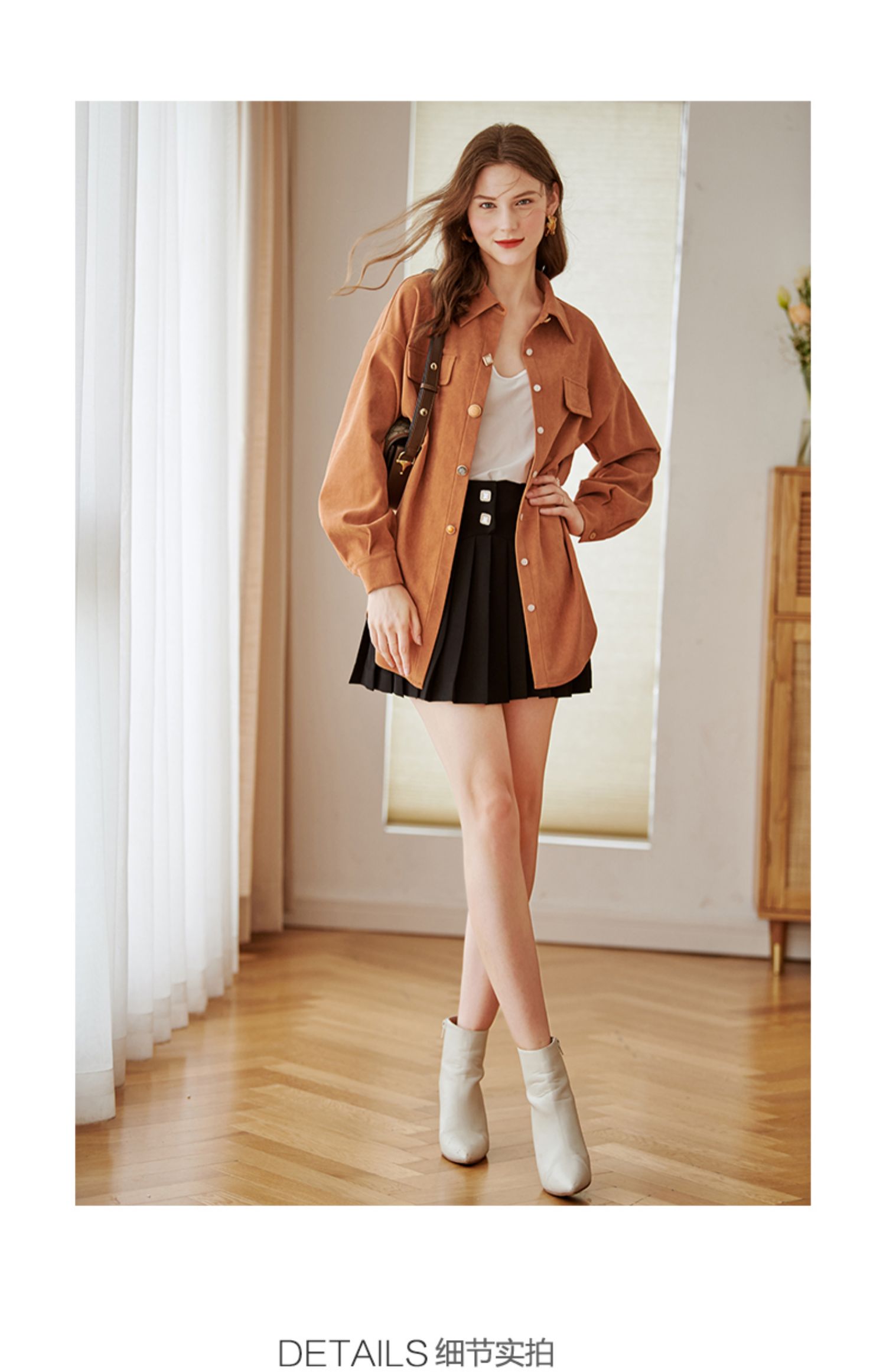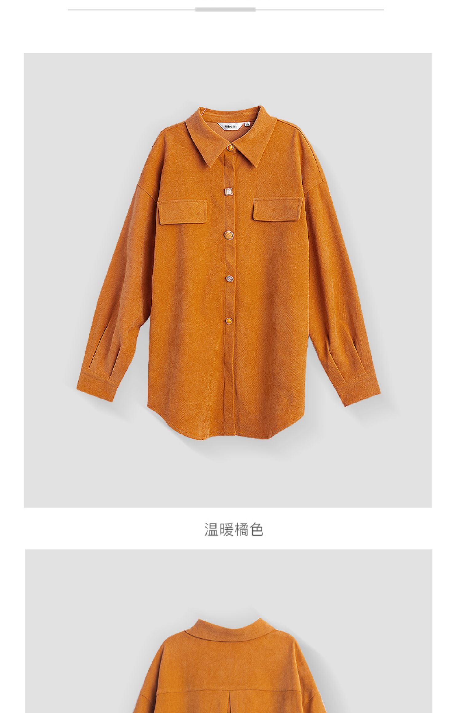 欧芮儿衬衫女设计感小众复古港味秋季新款2025年灯芯绒衬衣中长款