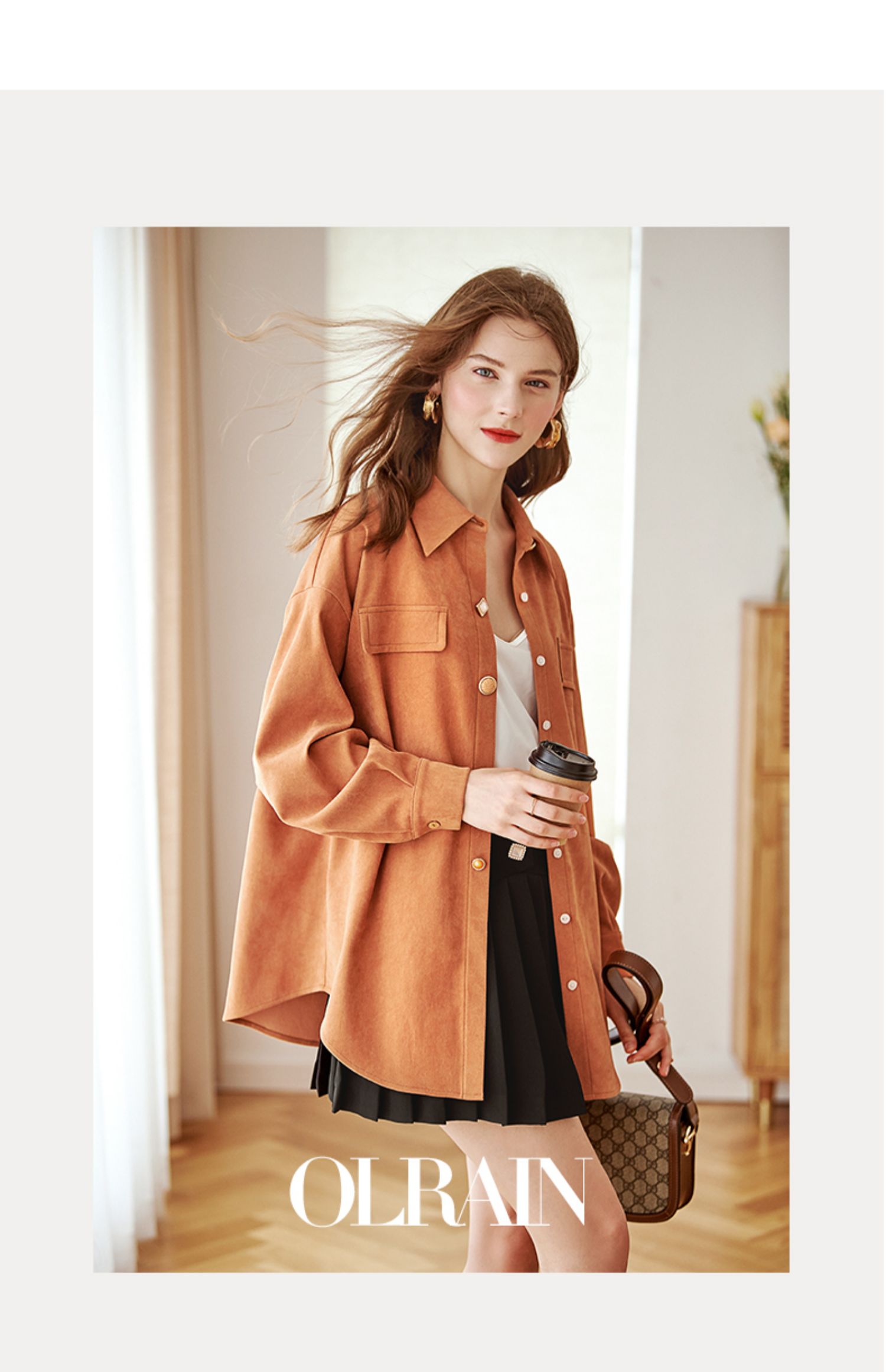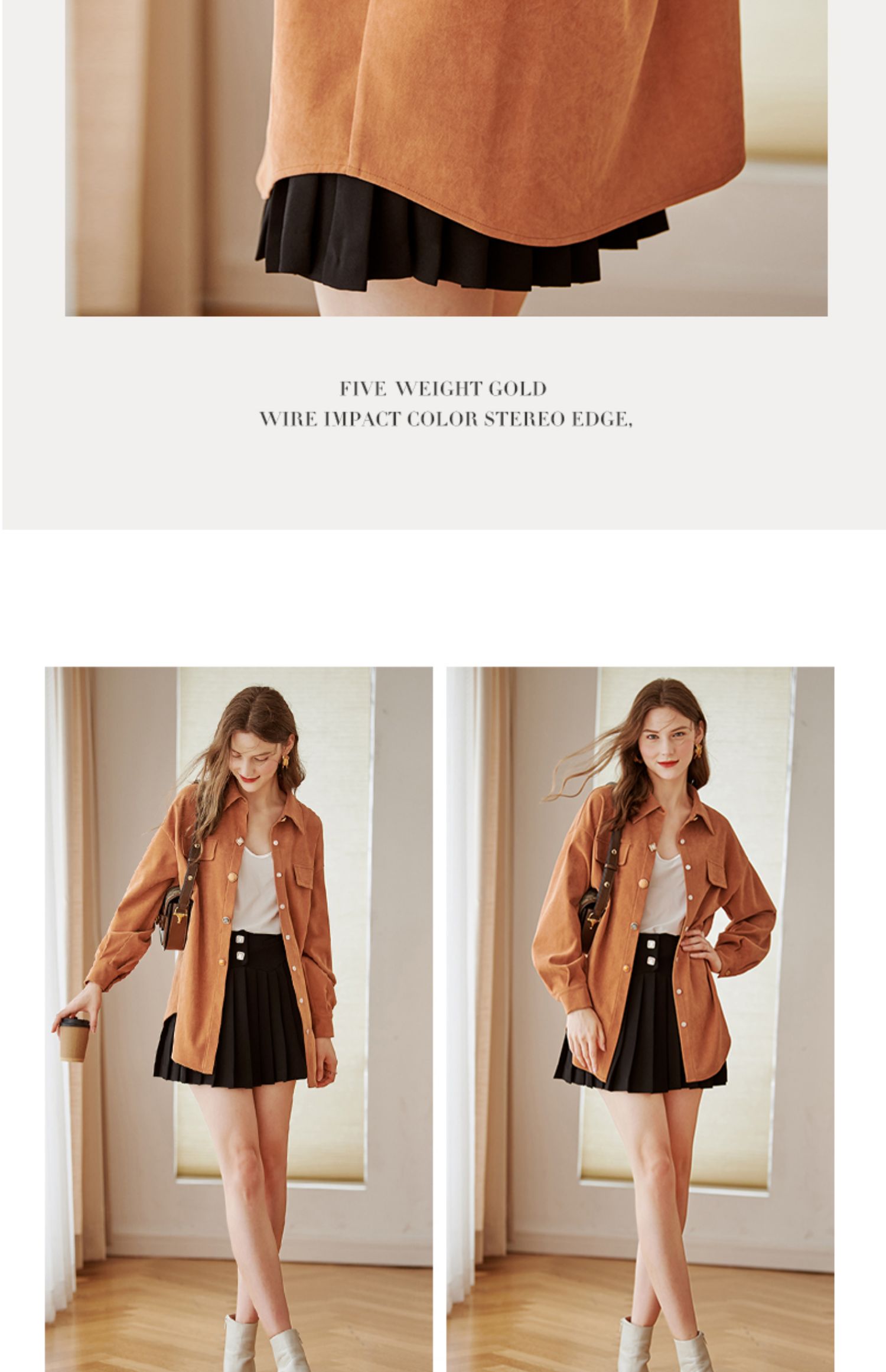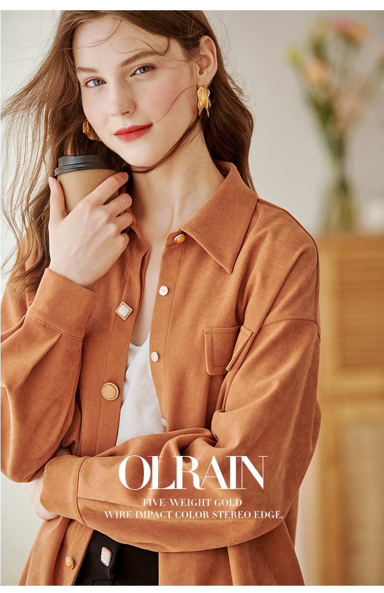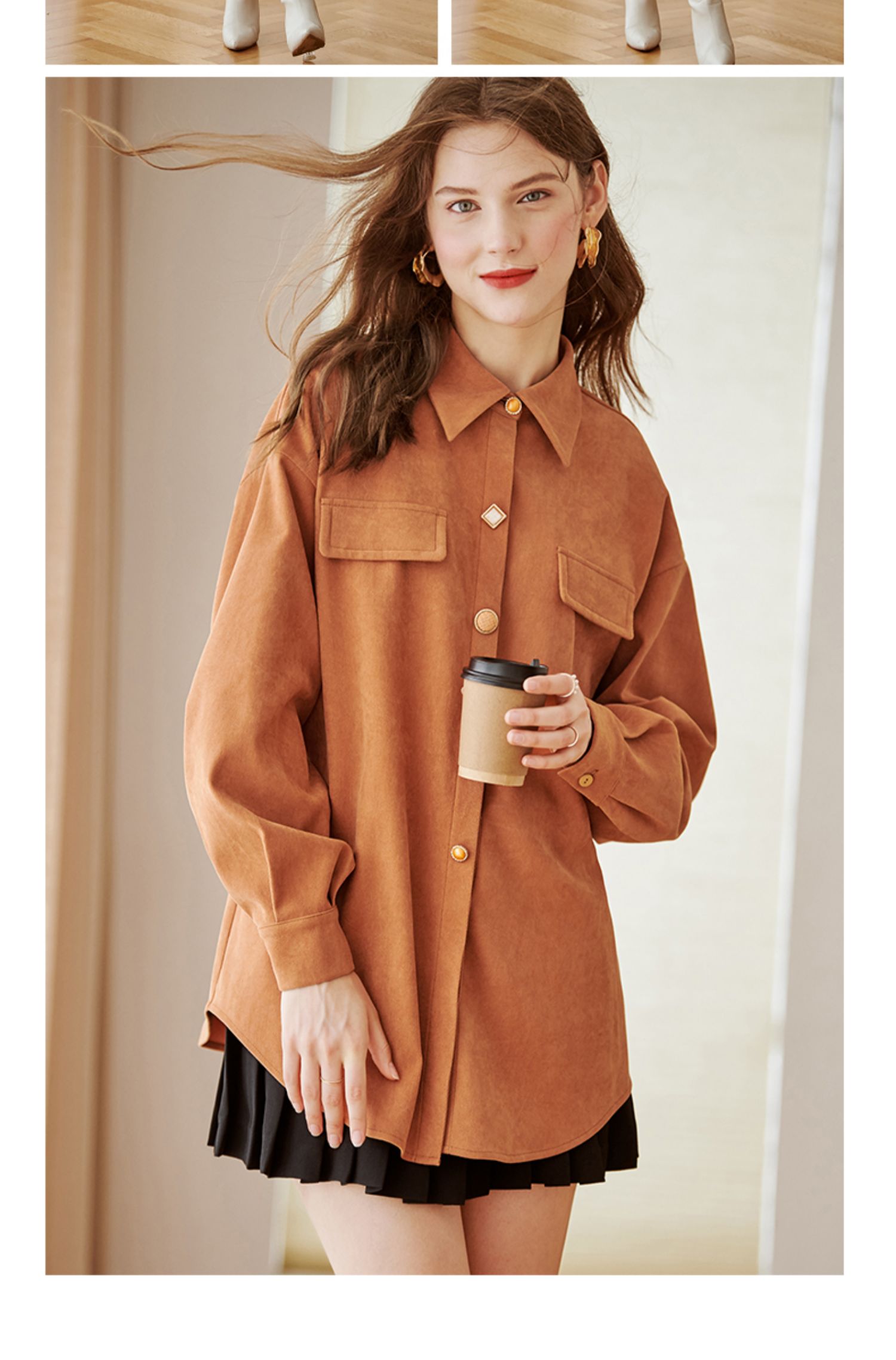 欧芮儿衬衫女设计感小众复古港味秋季新款2025年灯芯绒衬衣中长款