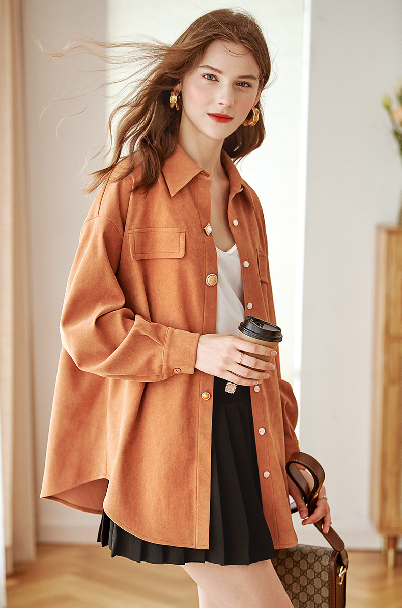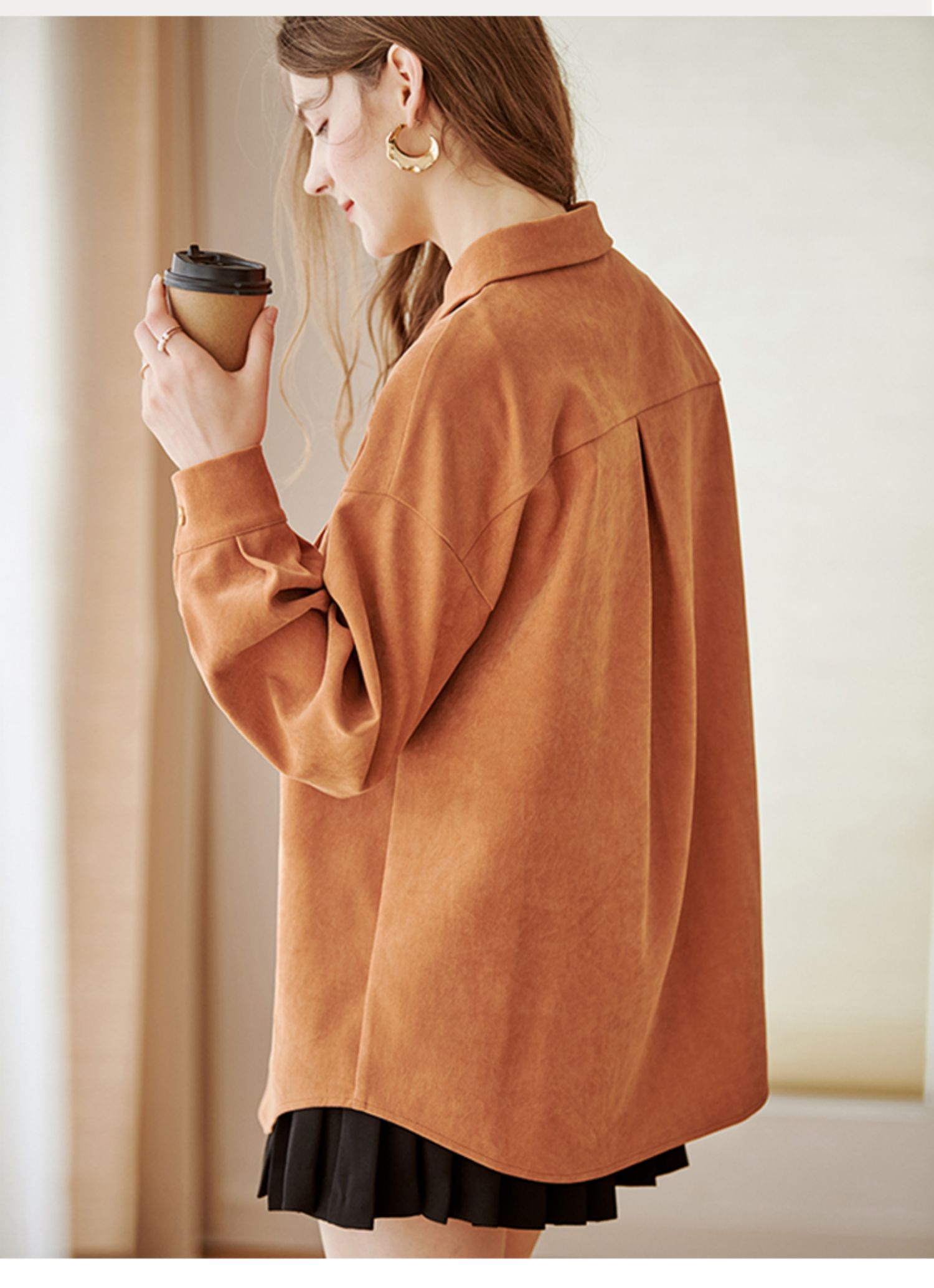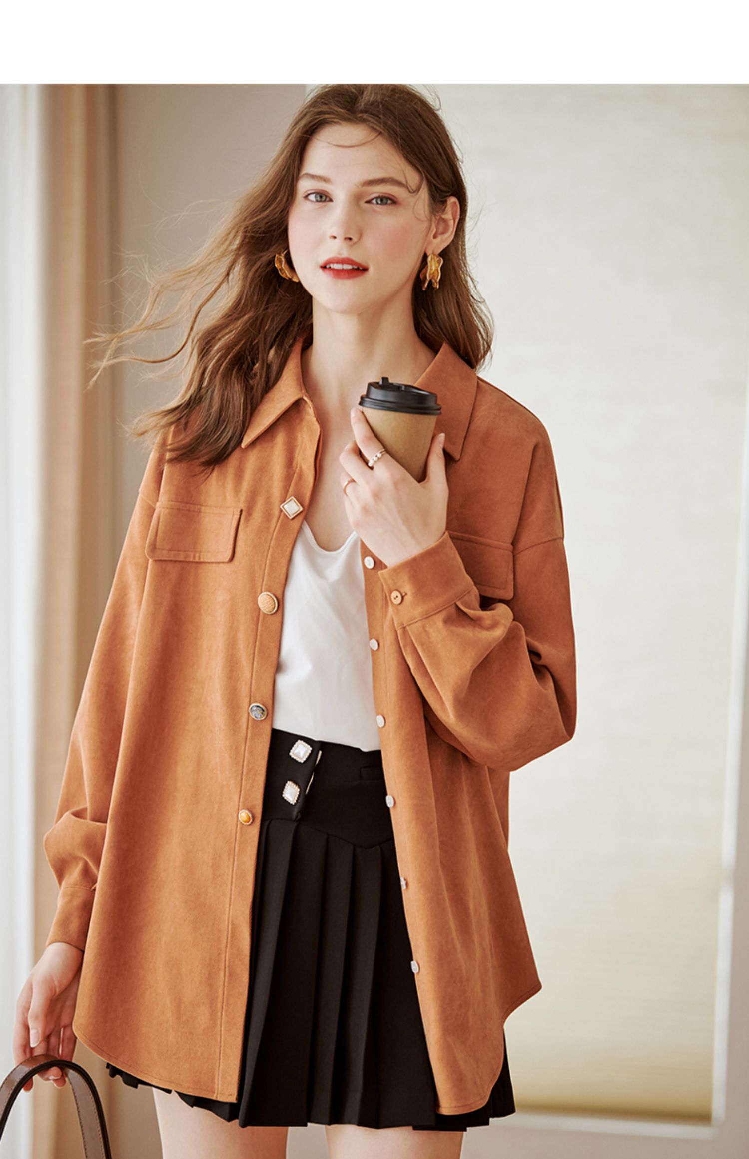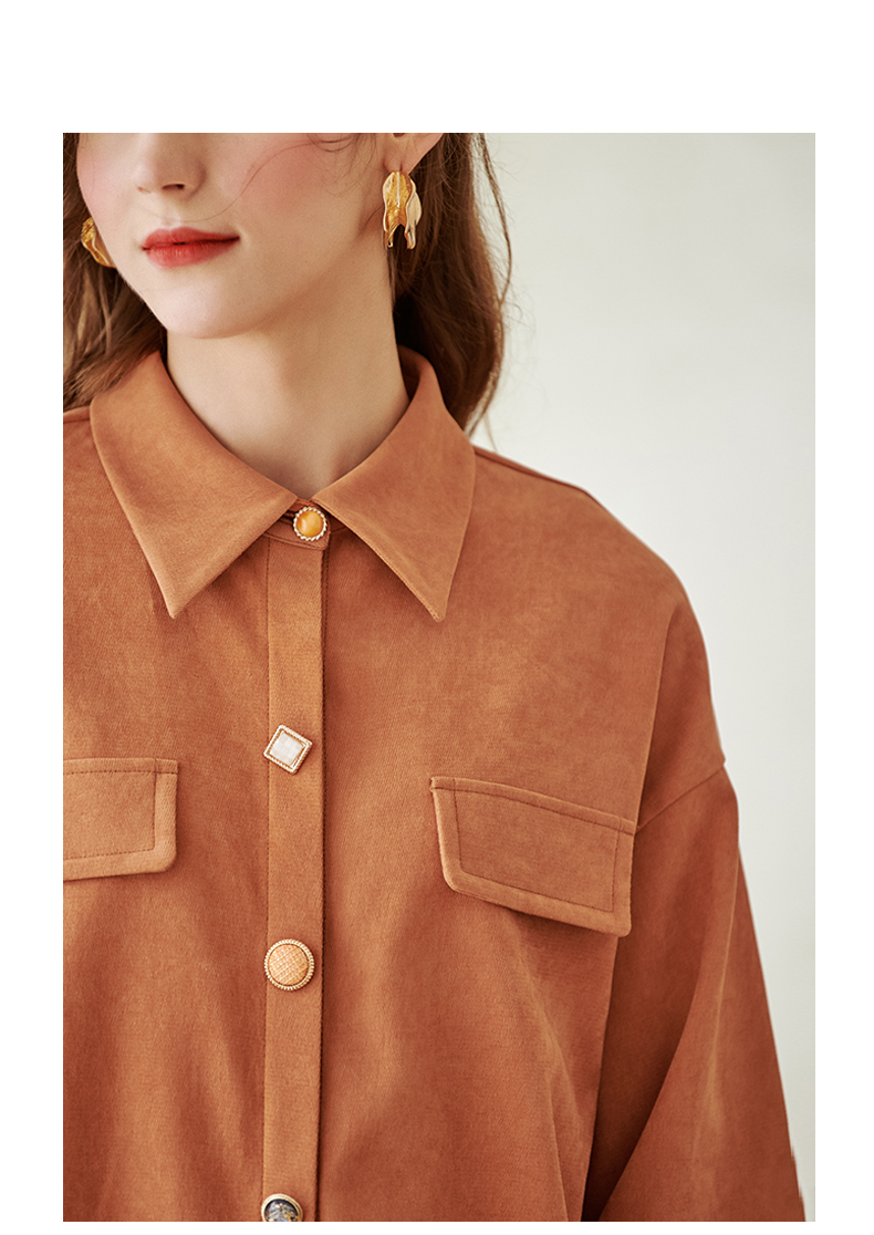 欧芮儿衬衫女设计感小众复古港味秋季新款2025年灯芯绒衬衣中长款