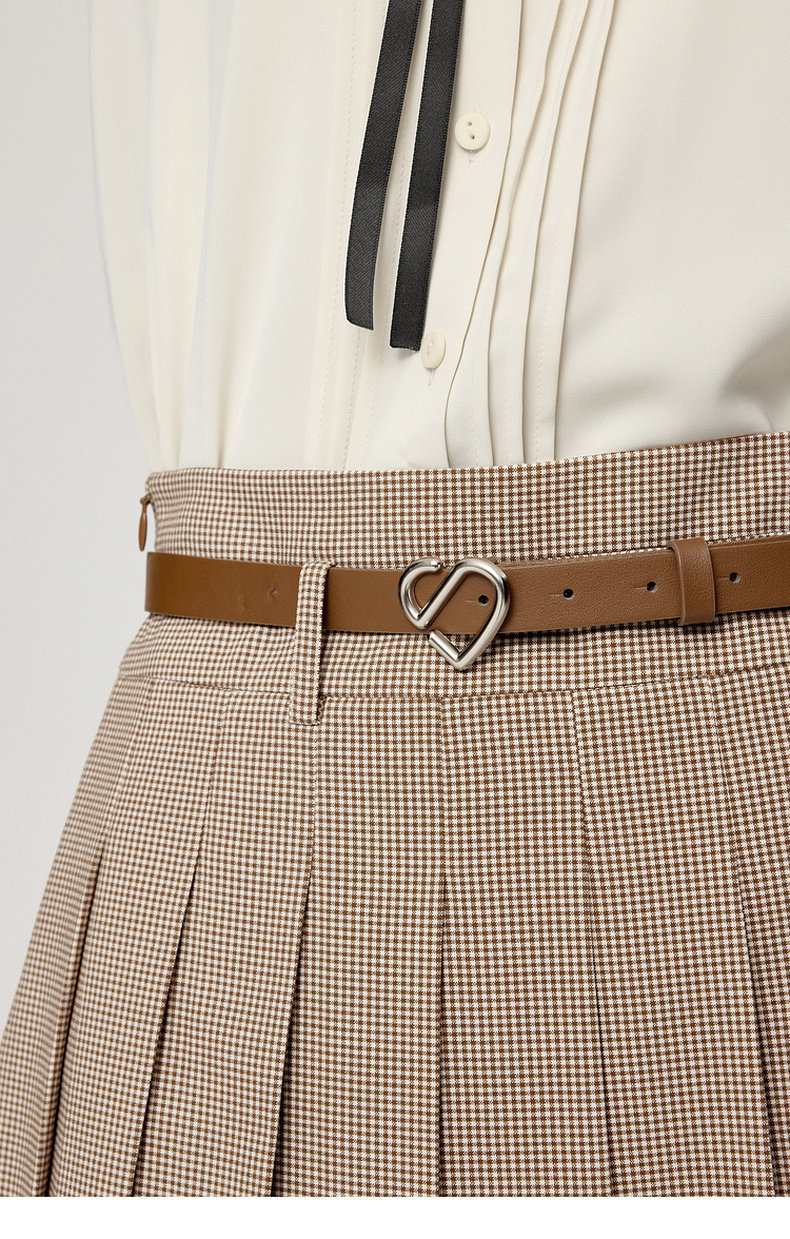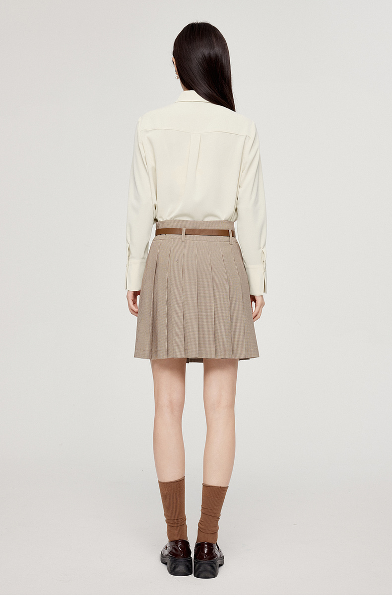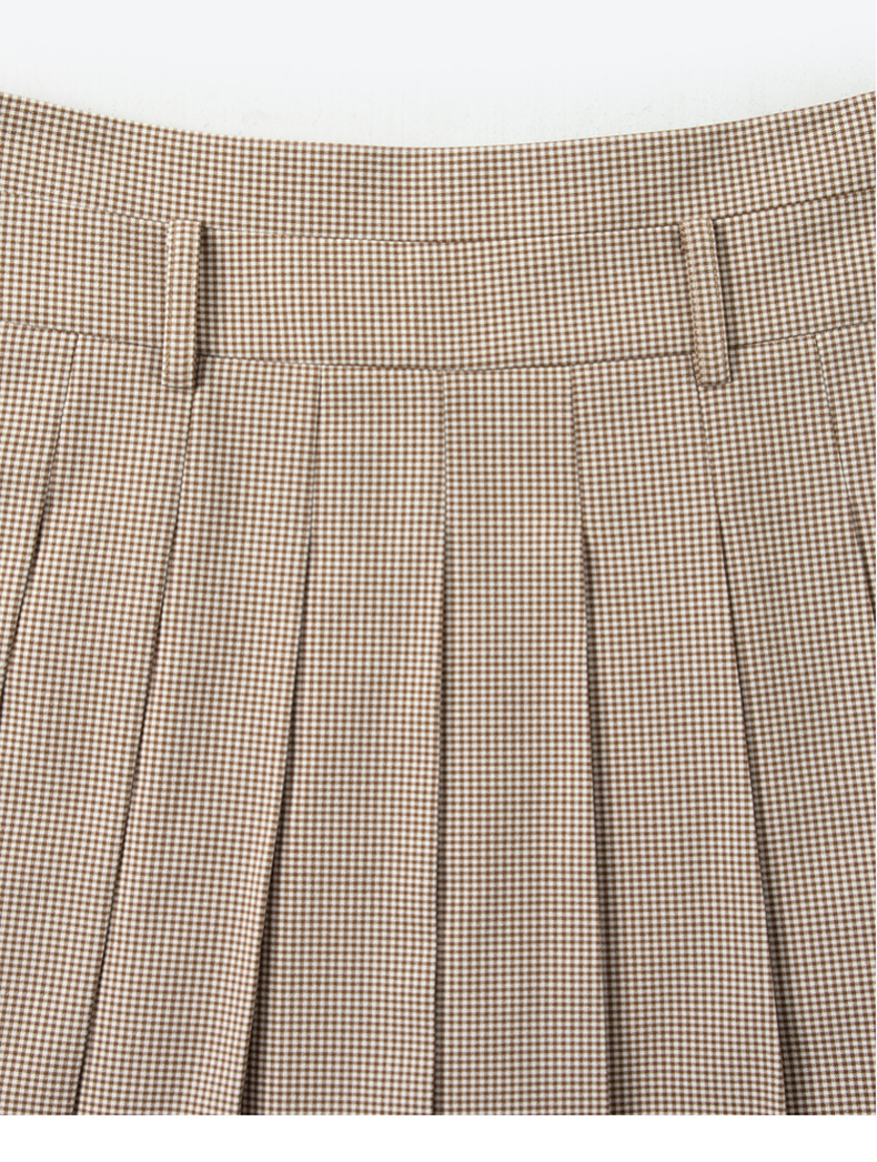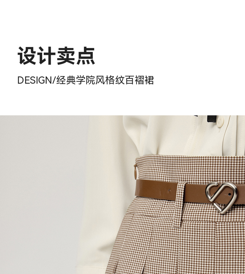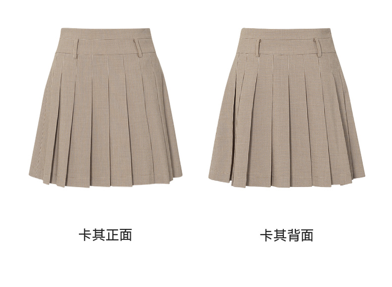 【严选】诗凡黎学院风双腰头格纹半身裙2024秋新款百褶高腰遮胯A字短裙女SF7140821