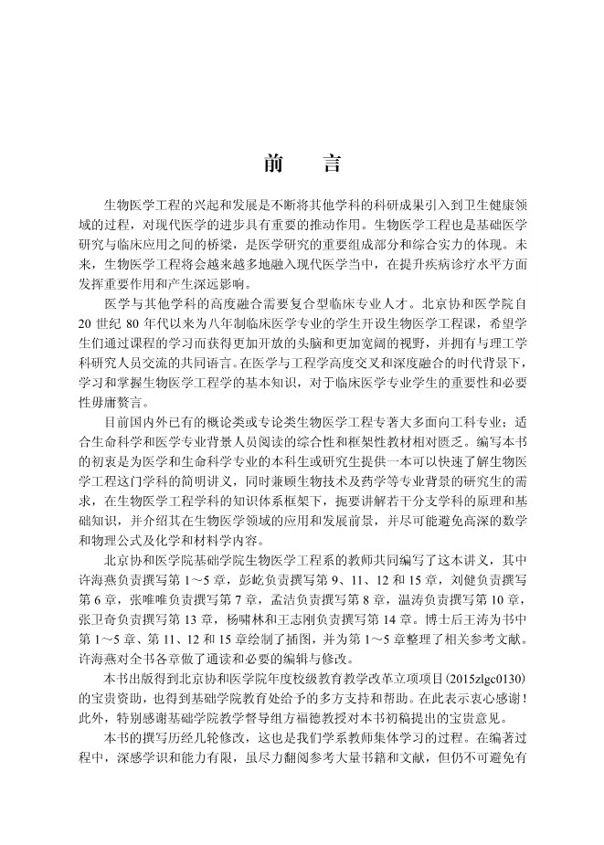 生物医学工程是将其他学科的研究成果应用于疾病的预防与诊治的知识高度密集的技术领域,是基础医学研究与临床医学应用的重要桥梁。