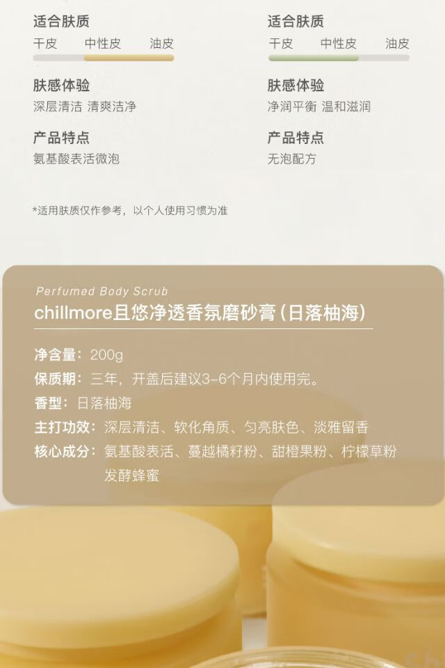 chillmore且悠 净透香氛磨砂膏(日落柚海)200g