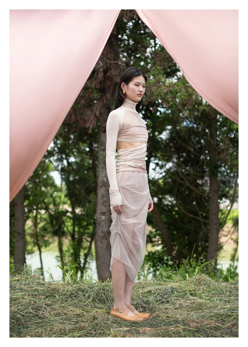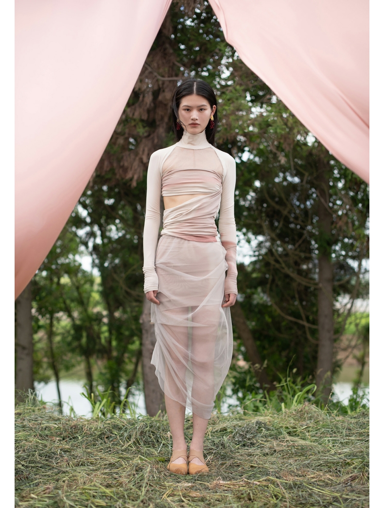 【UN MORCEAU×LABELHOOD】蕾虎镂空印花高领插肩上衣女