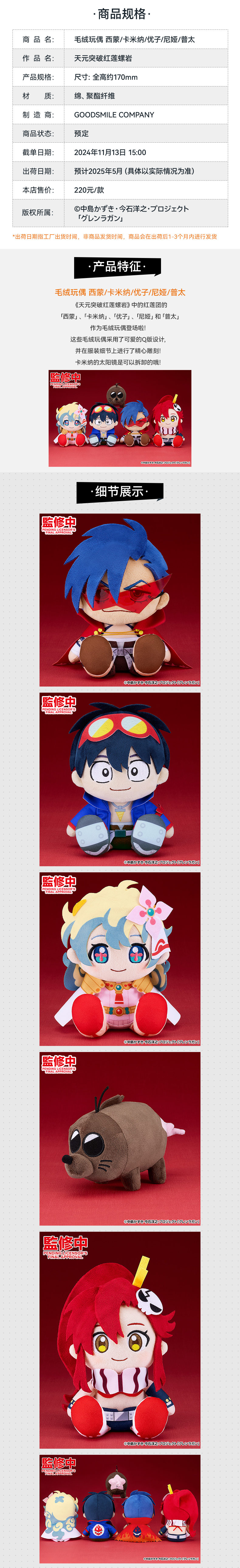 【GSC现货】毛绒玩偶 西蒙/卡米纳/优子/尼娅/普太 天元突破红莲螺岩