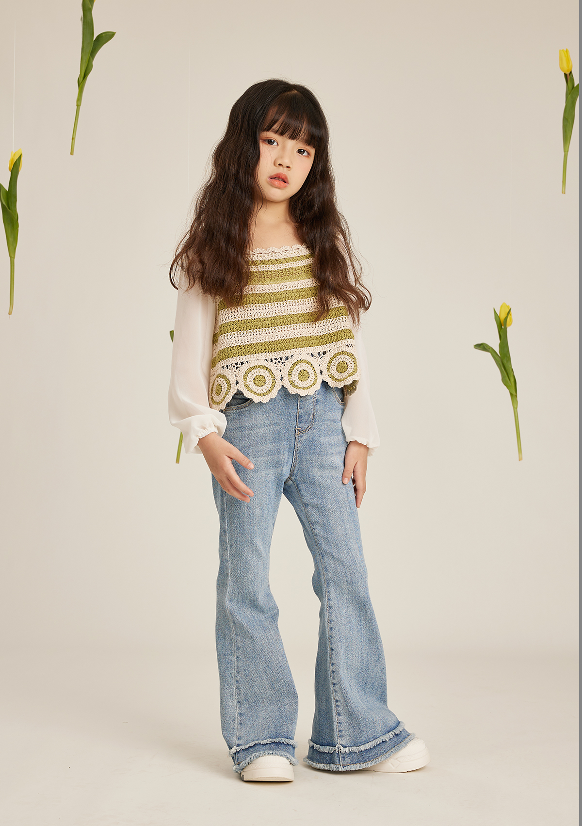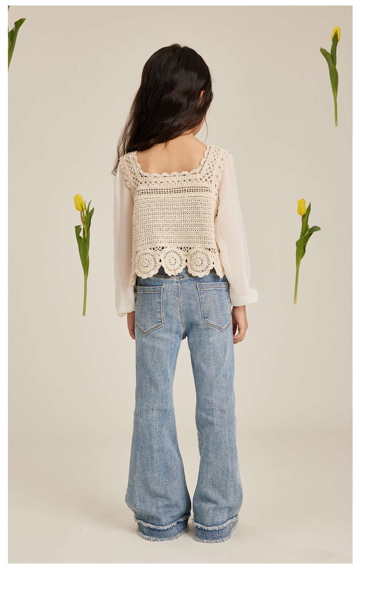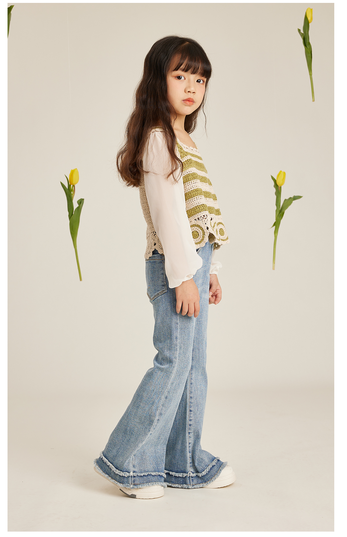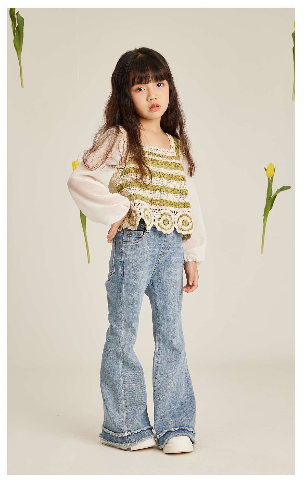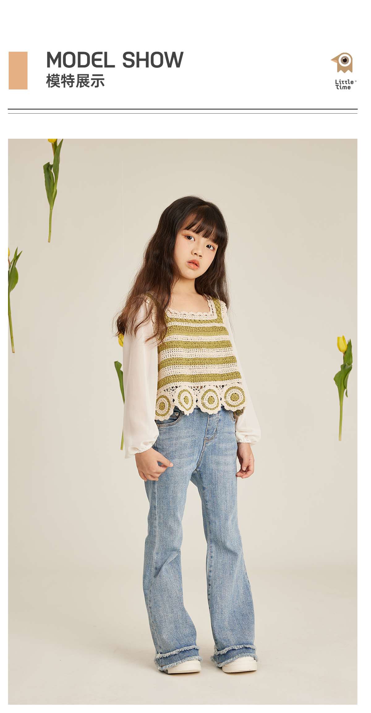 littletime女童牛仔裤春秋2023新款洋气时髦休闲裤潮浅色微喇叭裤