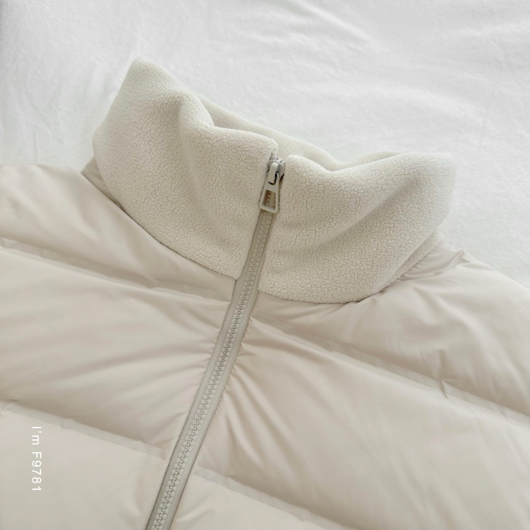 舒适立领,柔暖亲肤,防风暖护,摇粒绒+羽绒拼接,巨软糯