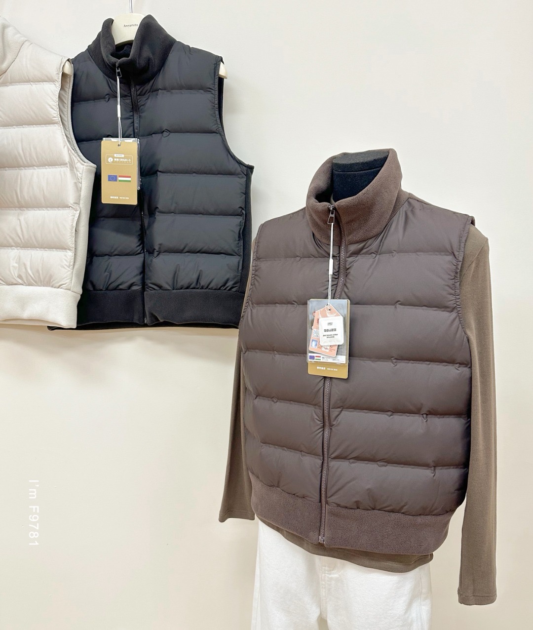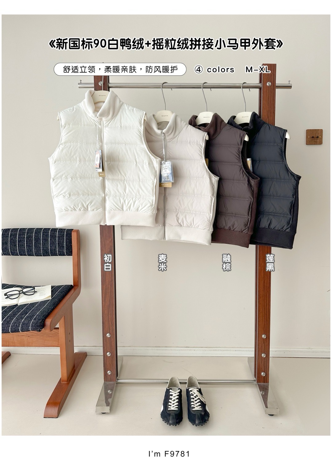 同系列羽绒马甲, 90白鸭绒,暖暖的,还拼接了摇粒绒,脖子和内里都是亲肤又温暖,好穿呀!!