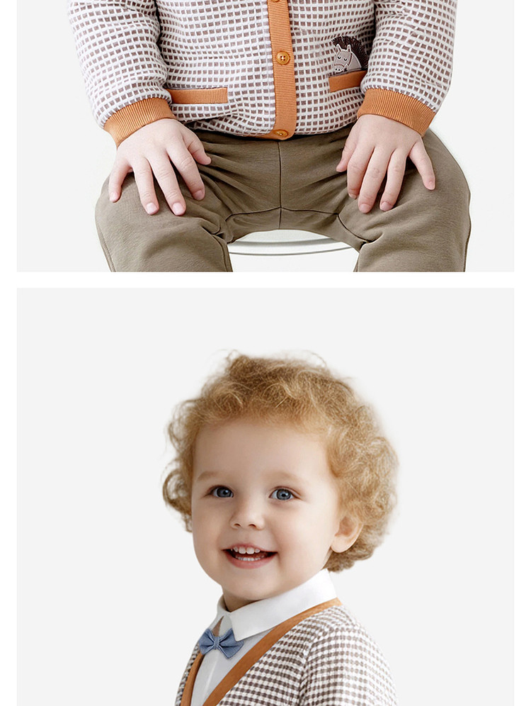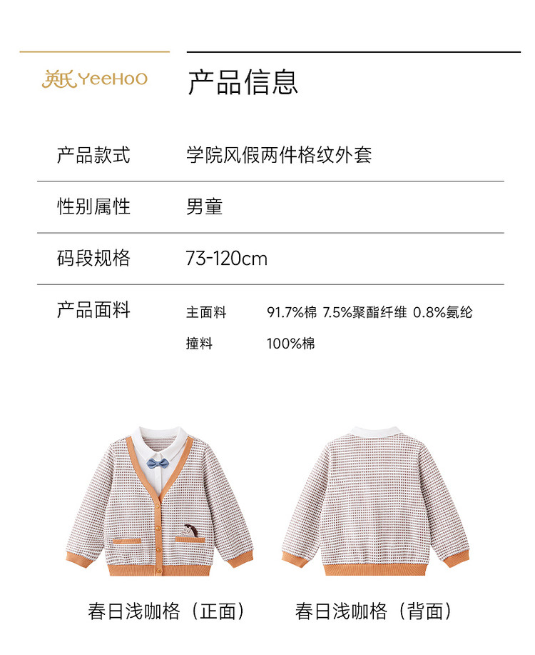 英氏儿童假两件外套格子长袖男童春秋英伦春季上衣YRWBJ1S027A