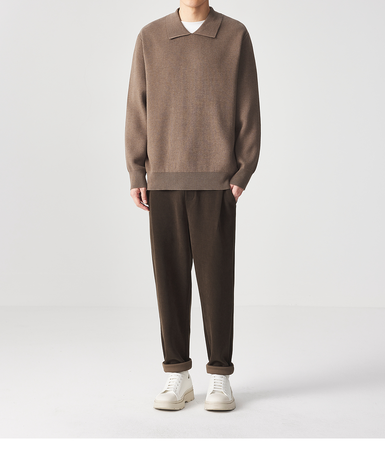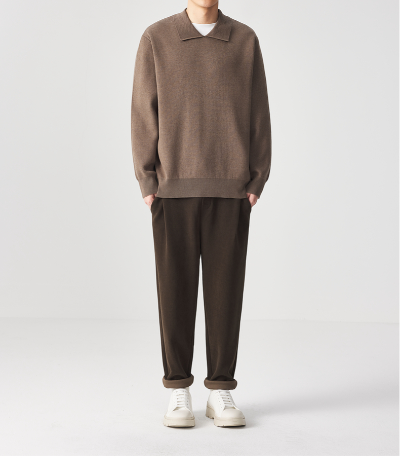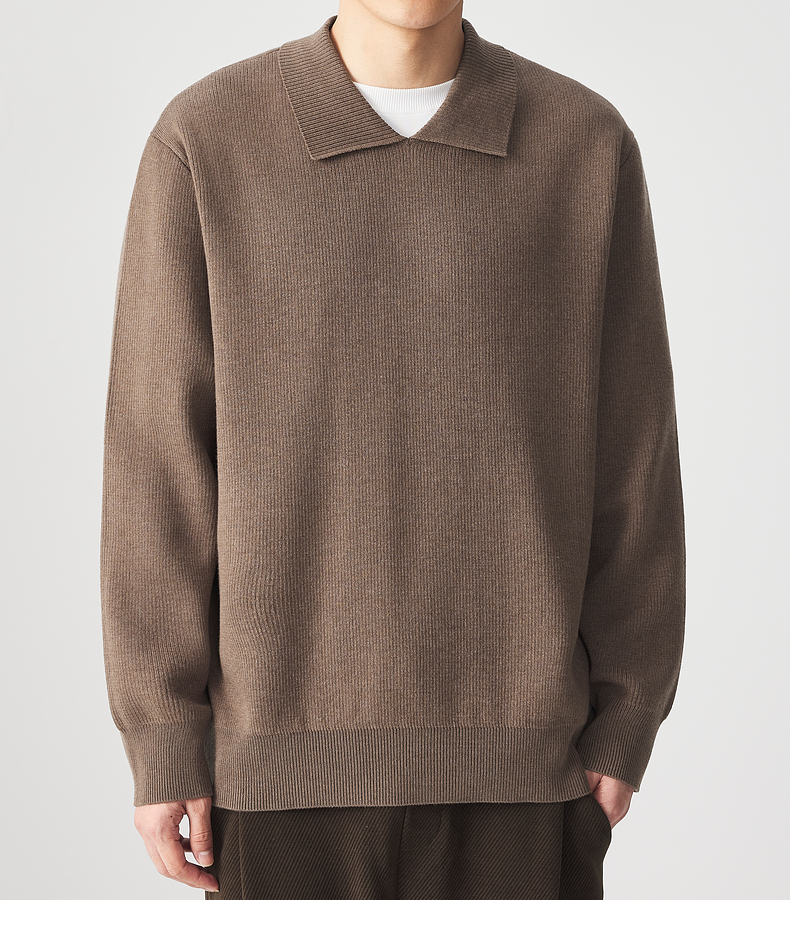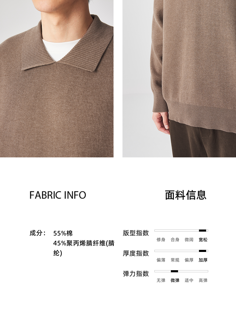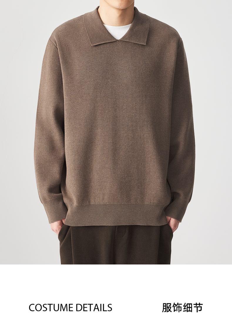 墨麦客男装 远红外升温 翻领针织衫冬季新款宽松保暖套头毛衣男。