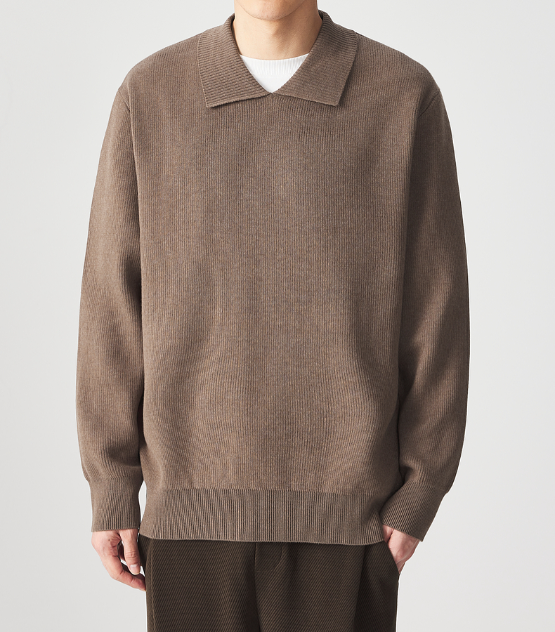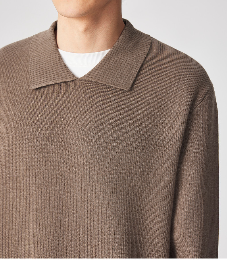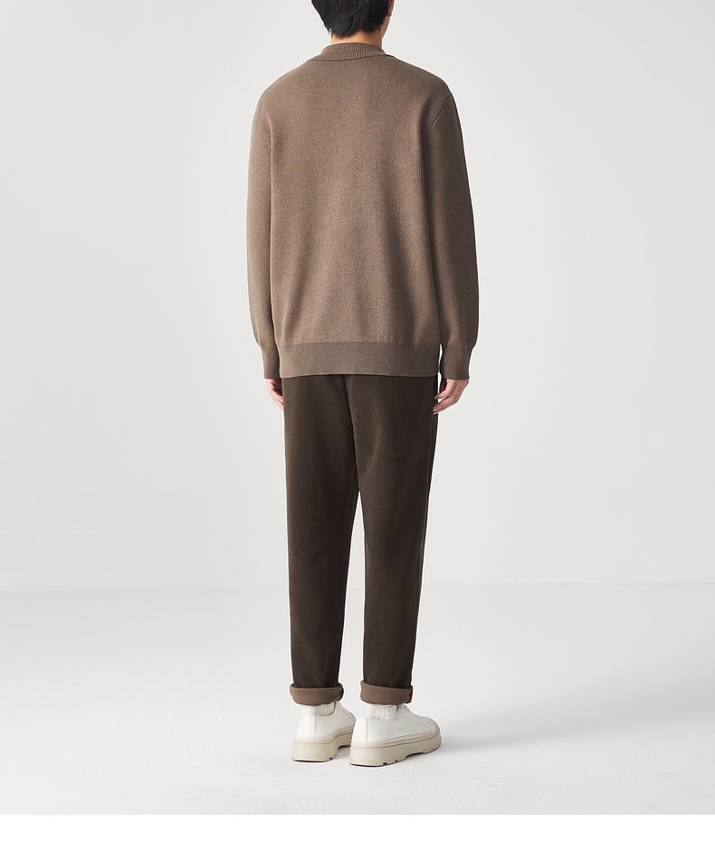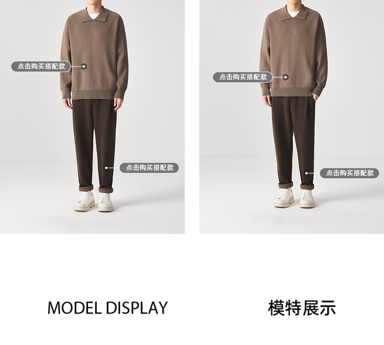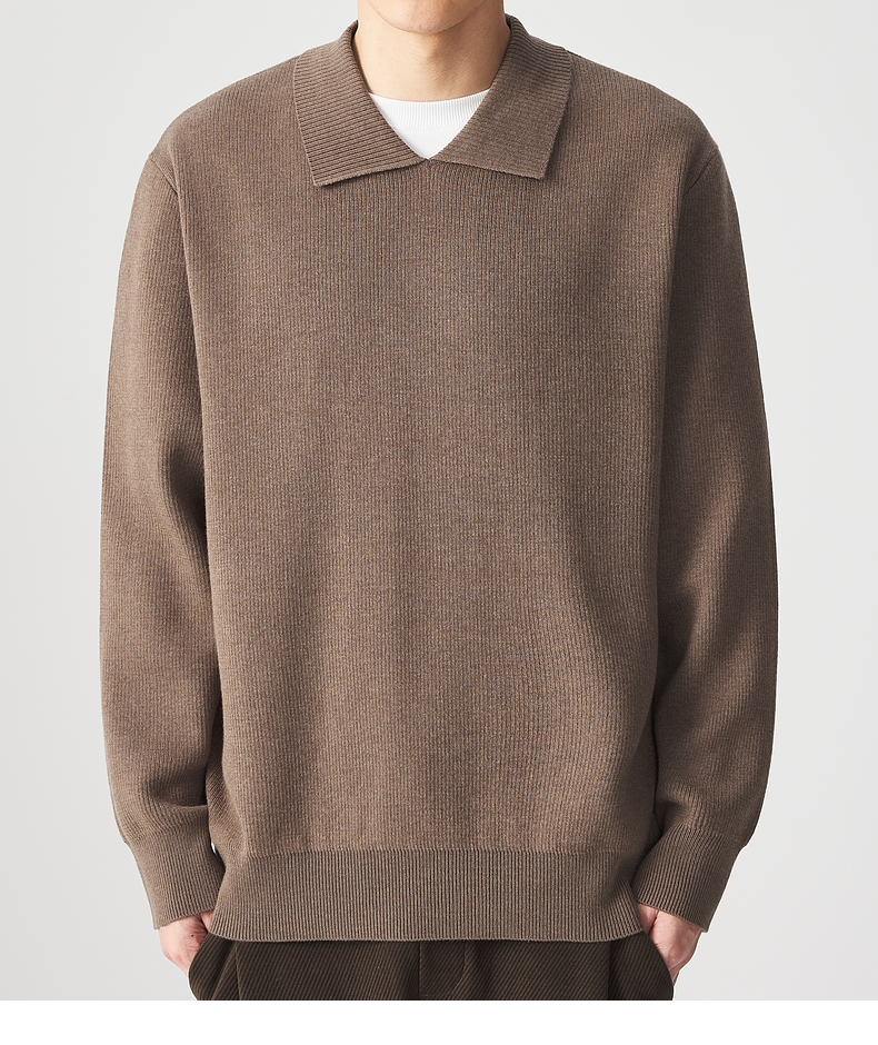 墨麦客男装 远红外升温 翻领针织衫冬季新款宽松保暖套头毛衣男。