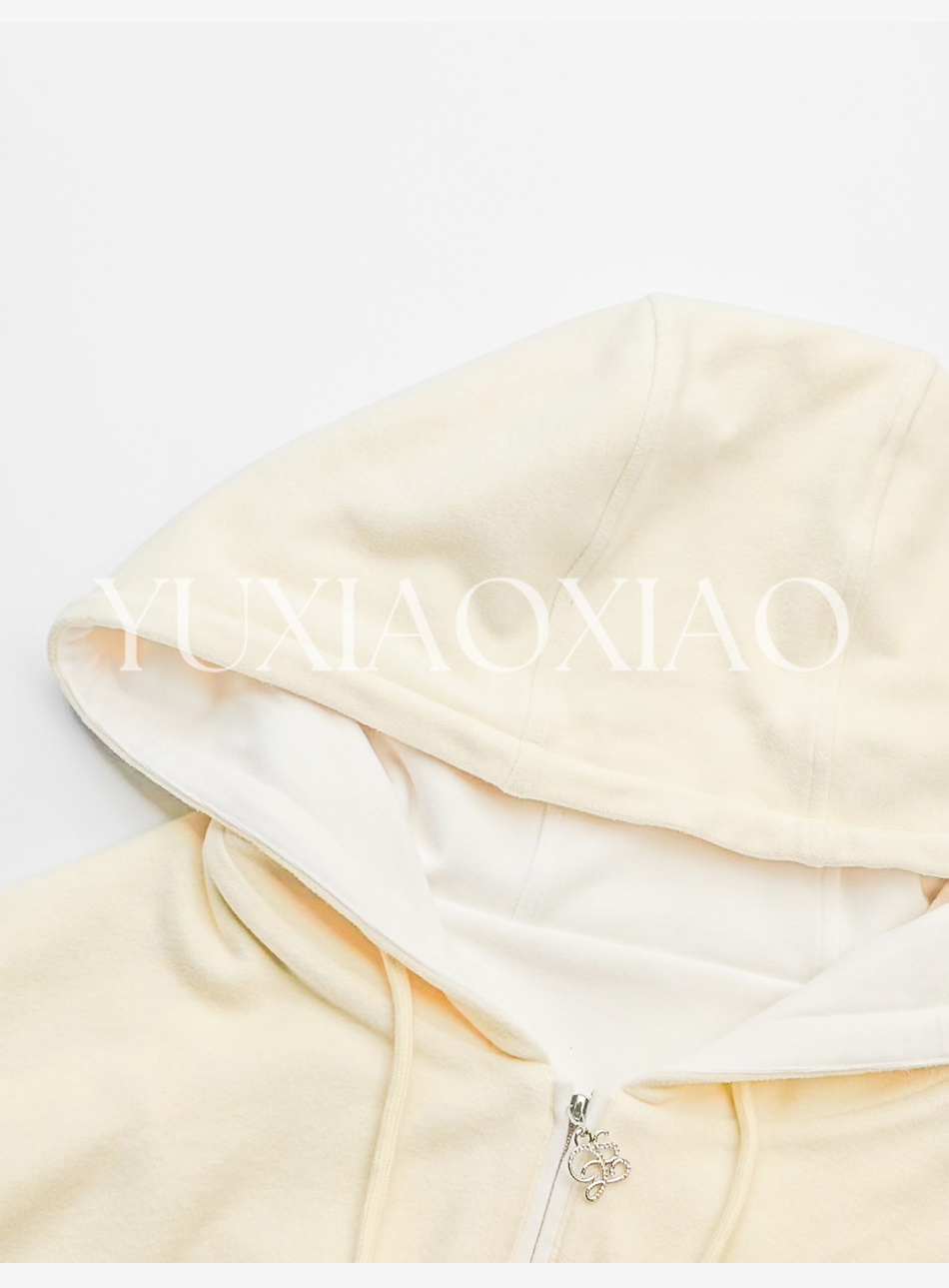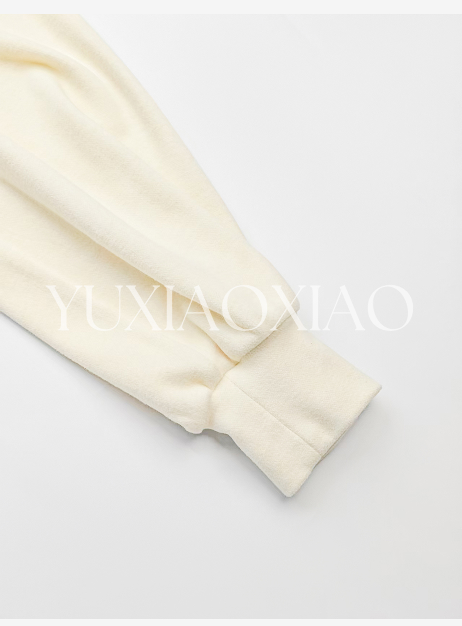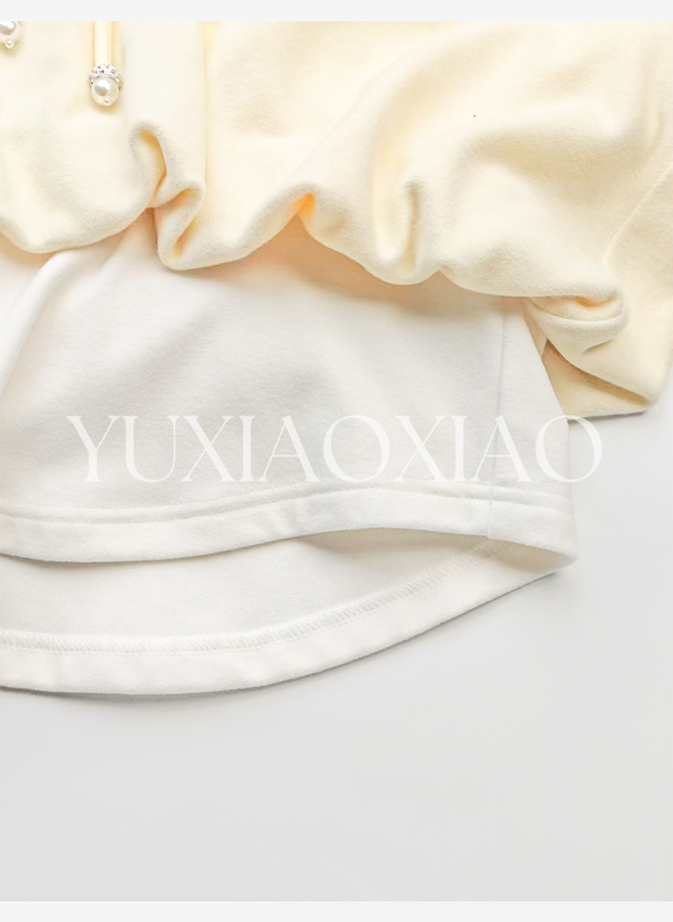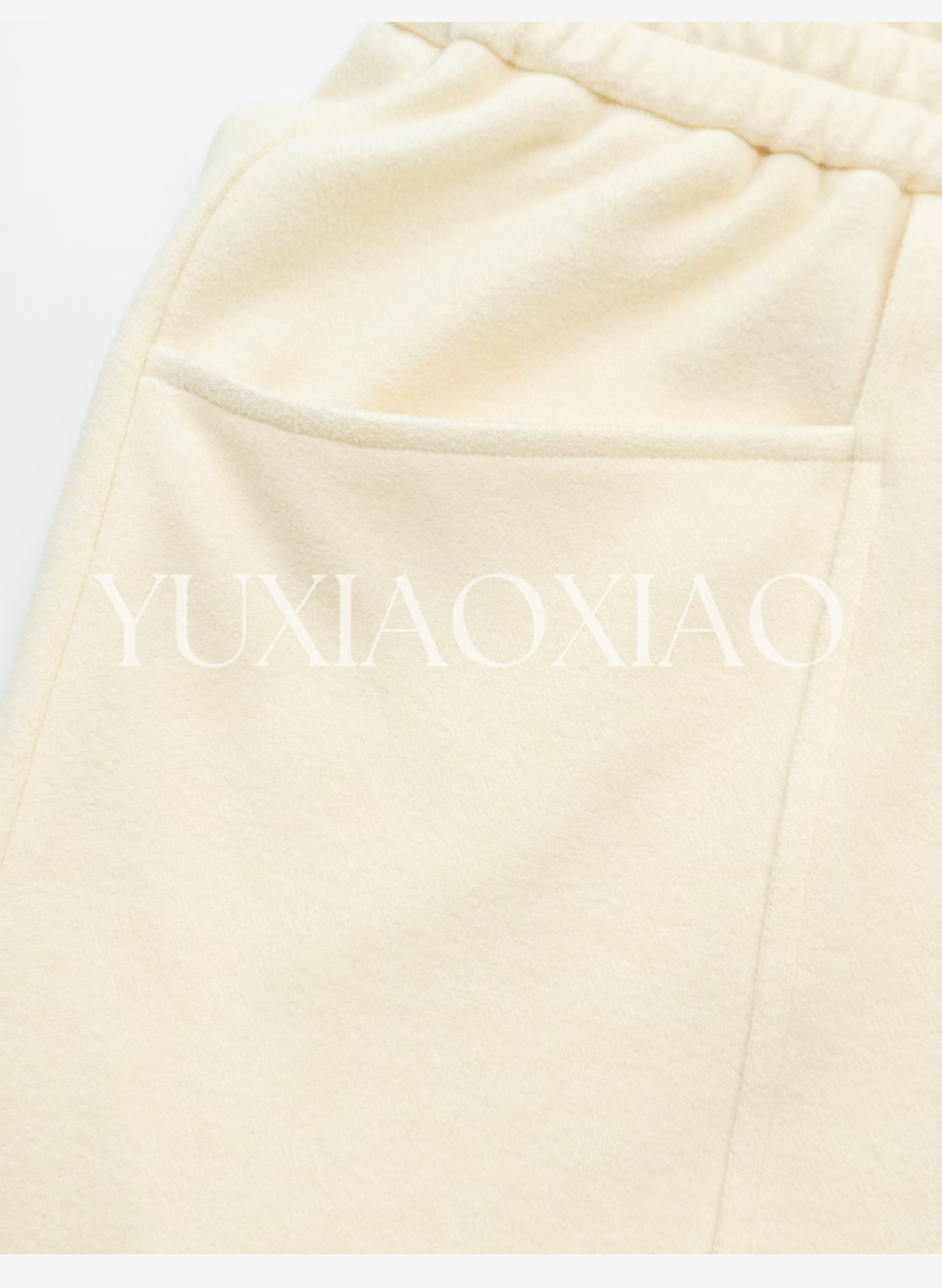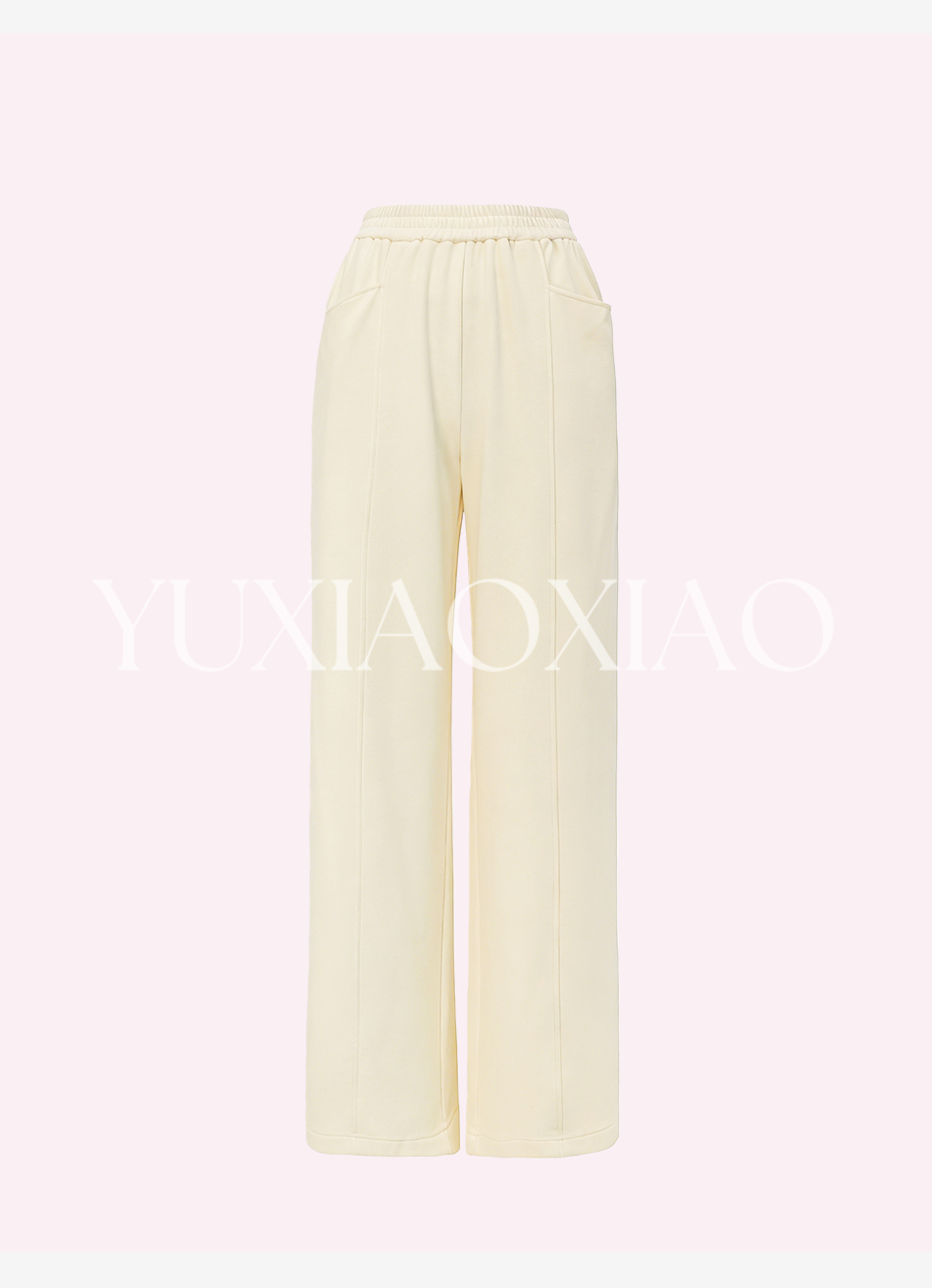 余潇潇【香草奶昔】时尚连帽拼接下摆假两件卫衣&直筒休闲裤套装