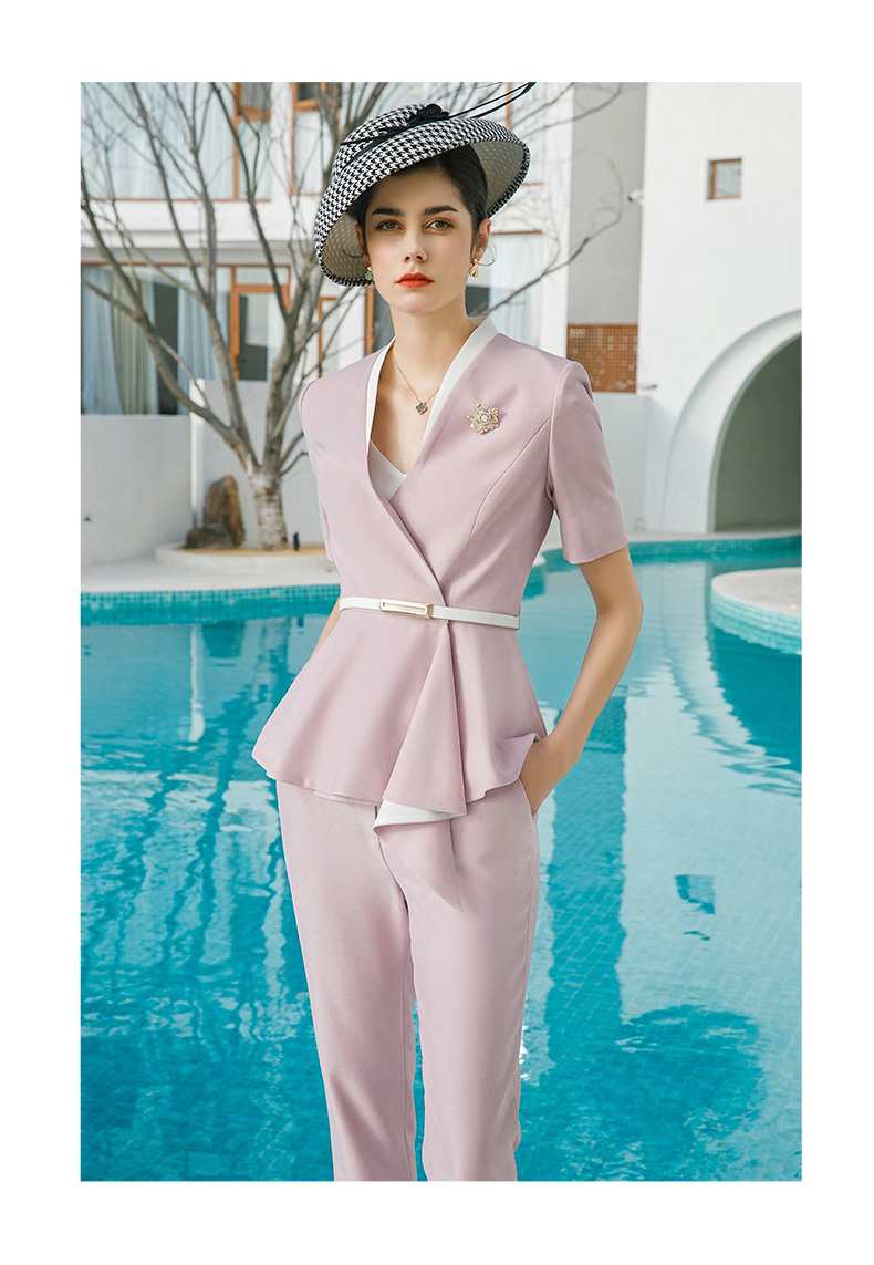 IWY/粉色高端职业女装套装夏季薄款西装气质美容师工作服前台工装CP1544